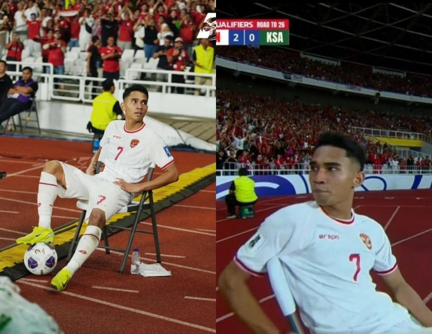 Marselino Ferdinan và màn ăn mừng ngạo nghễ sau khi ghi 2 bàn vào lưới ông lớn Ả Rập Xê Út.