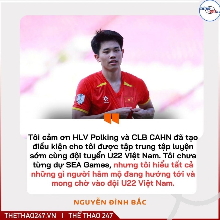 Sự thay đổi bắt đầu từ trước thềm SEA Games 33. Đình Bắc đã chủ động xin câu lạc bộ CAHN được tập trung sớm cùng đội tuyển U22 Việt Nam. Khát khao cống hiến và sự trân trọng màu áo đội tuyển được thể hiện qua tinh thần tập luyện nghiêm túc, chuẩn bị dài hơi cho giải đấu quan trọng nhất khu vực dành cho lứa tuổi trẻ.
