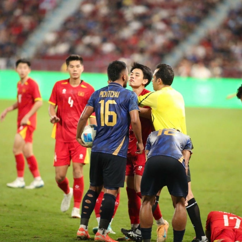 Ngôi sao 21 tuổi bảo vệ đồng đội trước cái đầu nóng của cầu thủ Thái Lan.