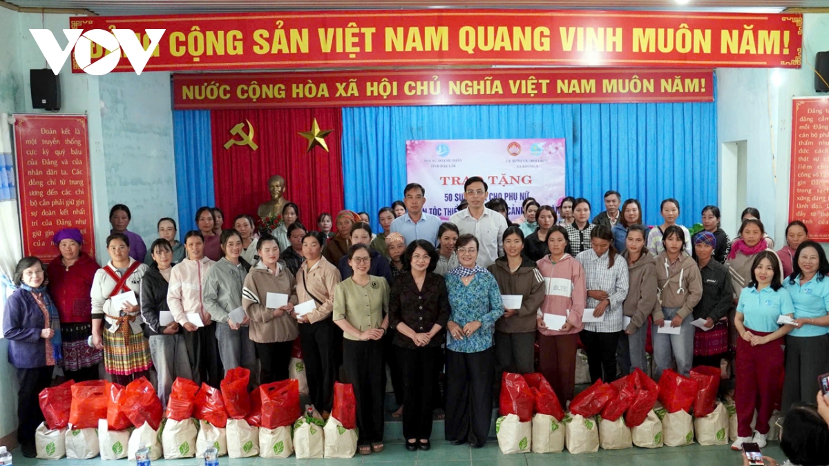 Tặng quà các gia đình phụ nữ khó khăn tại xã Krông Á, tỉnh Đắk Lắk.