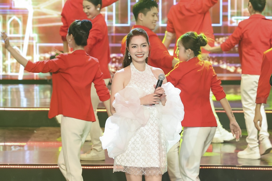 Nguyễn Ngọc Anh nổi bật với áo dài trong tiết mục solo đầu chương trình.