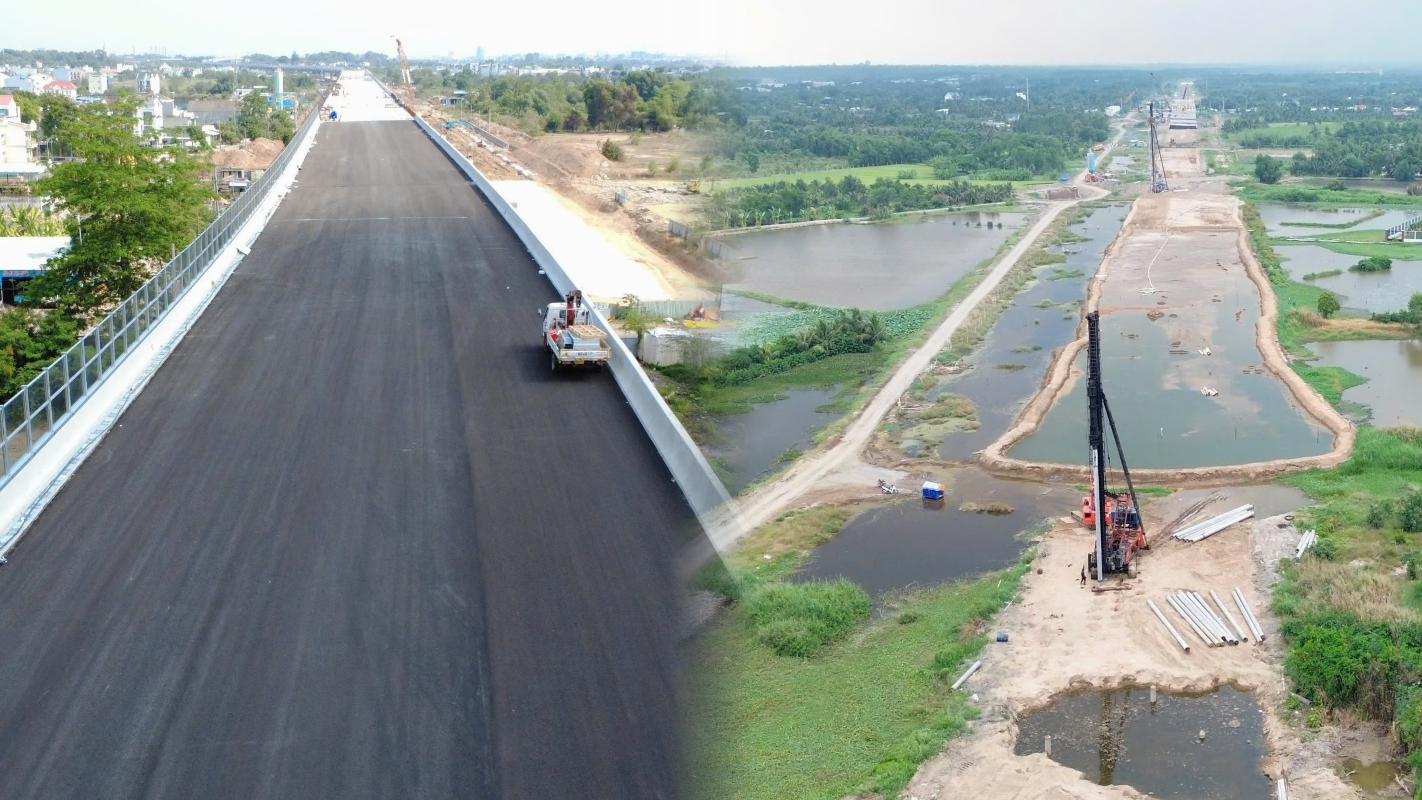 Công trường dự án Vành đai 3 phía Đông TP.HCM đã thành hình, trong khi phía Tây TP.HCM vẫn còn ngổn ngang. Ảnh: ĐT