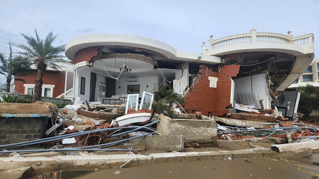 Hàng loạt căn biệt thự tại biển Xuân Thành sập đổ, hư hỏng nặng nề trong bão số 10.