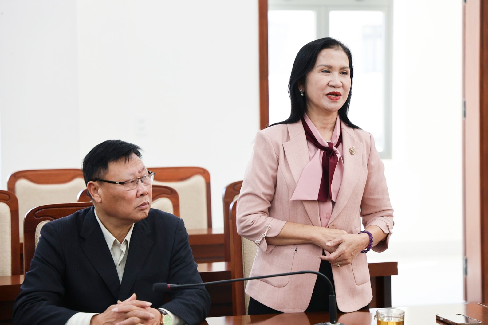 Chủ tịch Hội Khuyến học tỉnh Lâm Đồng Tôn Thị Ngọc Hạnh phát biểu tại buổi trao quà tặng