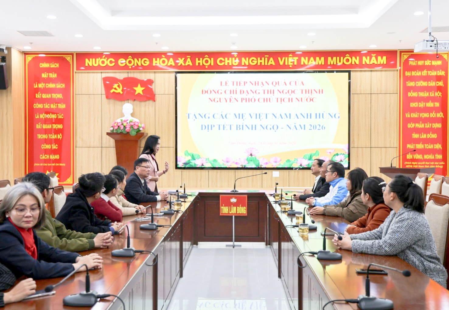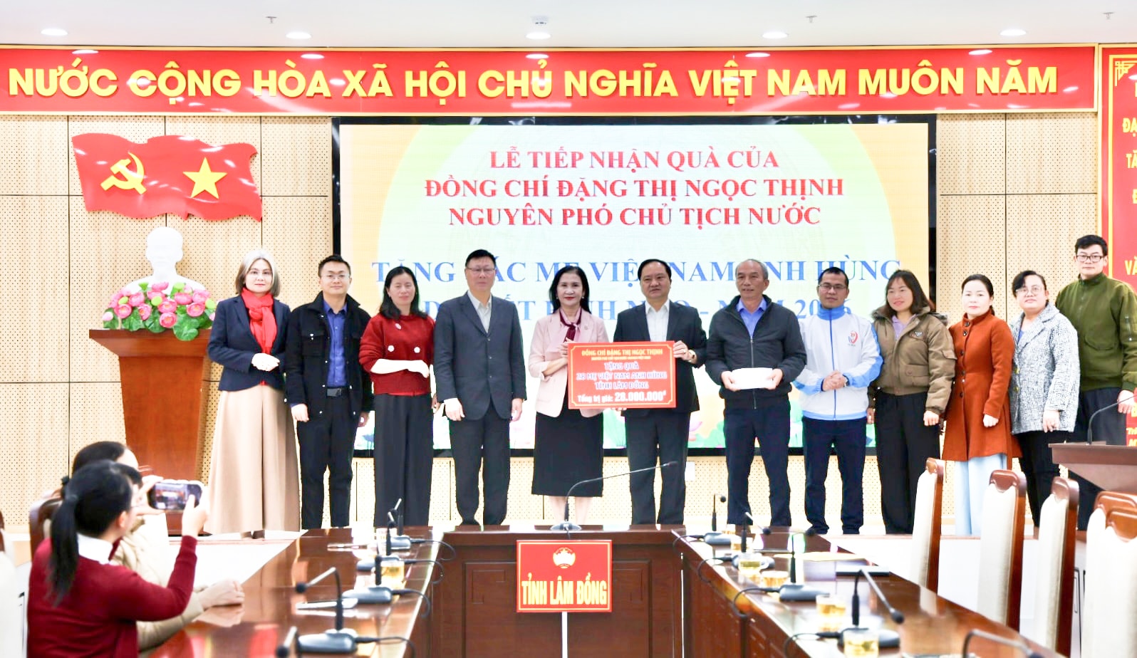 Tại lễ tiếp nhận, Chủ tịch Hội Khuyến học tỉnh Lâm Đồng Tôn Thị Ngọc Hạnh, thừa ủy quyền của nguyên Phó Chủ tịch nước Đặng Thị Ngọc Thịnh đã trao kinh phí đến Ủy ban MTTQ Việt Nam tỉnh và Hội Khuyến học tỉnh Lâm Đồng để tổ chức trao quà tri ân các Mẹ Việt Nam anh hùng.