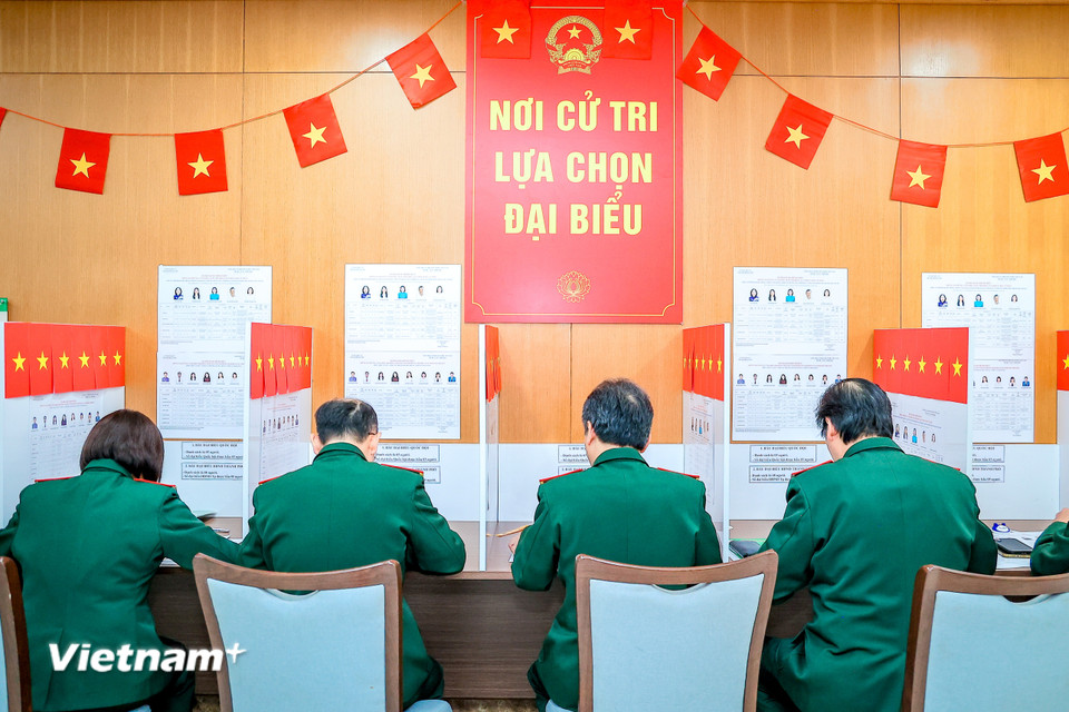 Cử tri tham gia bỏ phiếu trong không khí dân chủ, phấn khởi và đúng quy định của Luật Bầu cử đại biểu Quốc hội và đại biểu Hội đồng nhân dân. (Ảnh: Hoài Nam/Vietnam+)