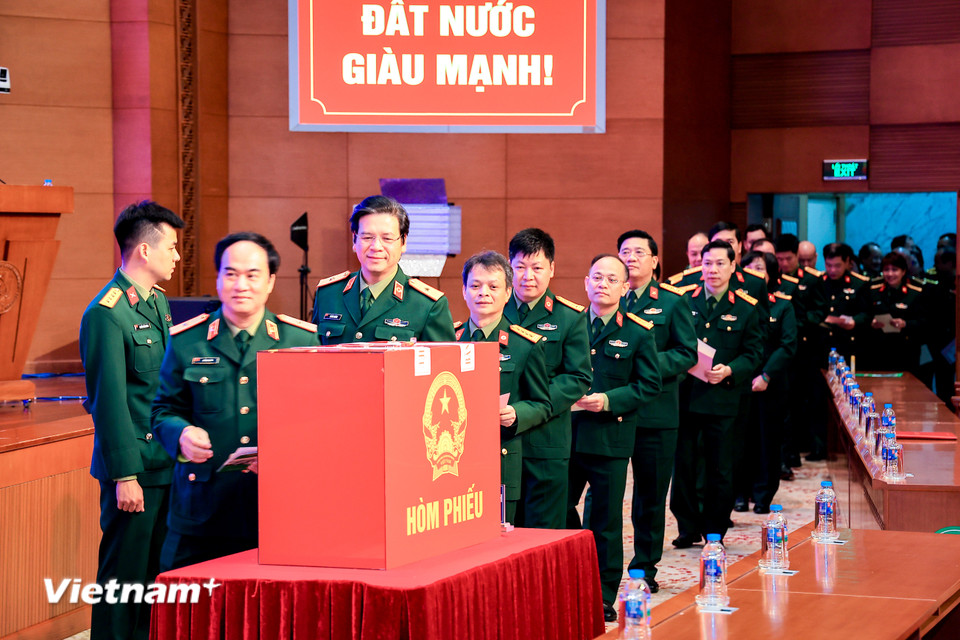 Các cán bộ, nhân viên tại bệnh viện Trung ương Quân đội 108 bỏ phiếu bầu cử. (Ảnh: Hoài Nam/Vietnam+)