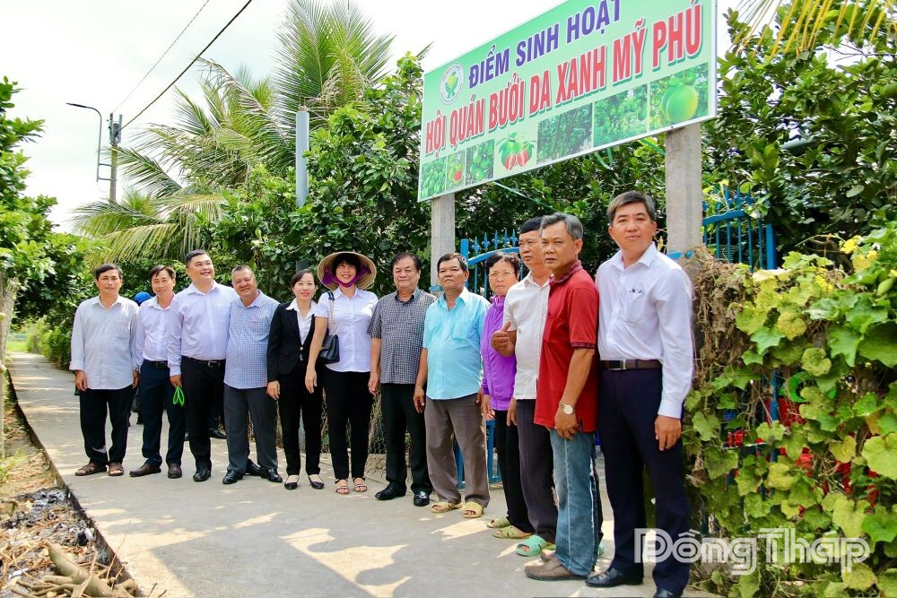 Tiếp đó, Đoàn khảo sát mô hình trồng bưởi da xanh thuộc Hội quán Bưởi da xanh Mỹ Phú, một trong những mô hình trồng, sản xuất và tiêu thụ bưởi da xanh tiêu biểu của địa phương.