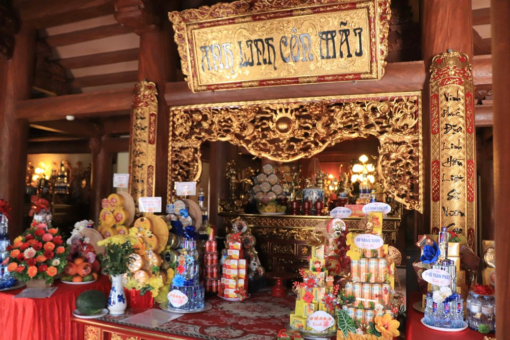 Không gian thờ tự tại Đền thờ liệt sĩ Nguyễn Thái Học được bài trí trang nghiêm, thành kính.