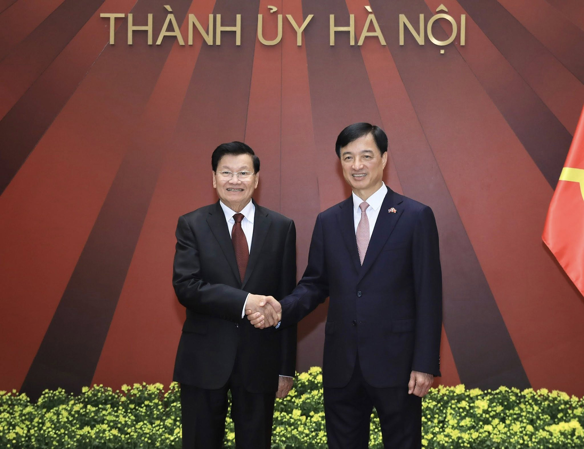 Bí thư Thành ủy Hà Nội Nguyễn Duy Ngọc và Tổng Bí thư, Chủ tịch nước Lào Thongloun Sisoulith. Ảnh: Quang Thái