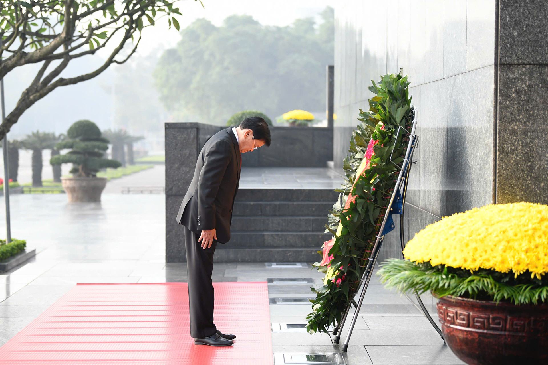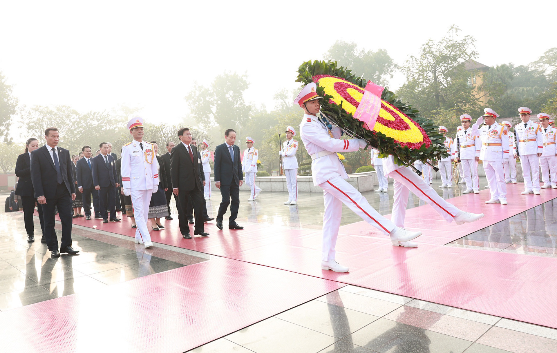 Tổng Bí thư, Chủ tịch nước Lào Thongloun Sisoulith và phu nhân cùng đoàn đại biểu cấp cao Đảng, Nhà nước Lào đặt vòng hoa, vào Lăng viếng Chủ tịch Hồ Chí Minh