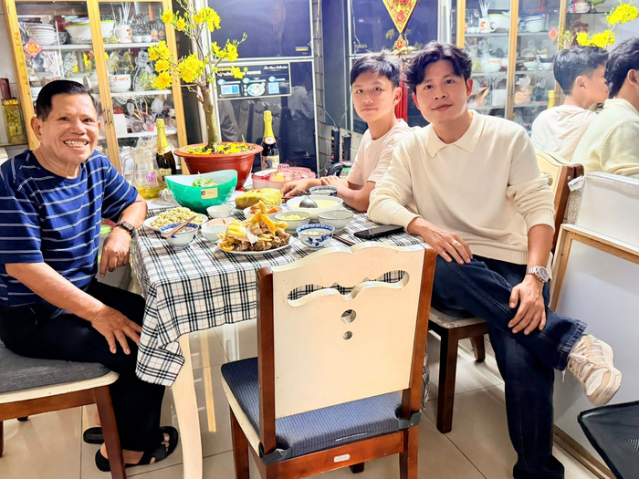 Hình ảnh nhạc sĩ Nguyễn Văn Chung sum vầy cùng ba và con trai trong ngày cuối năm.