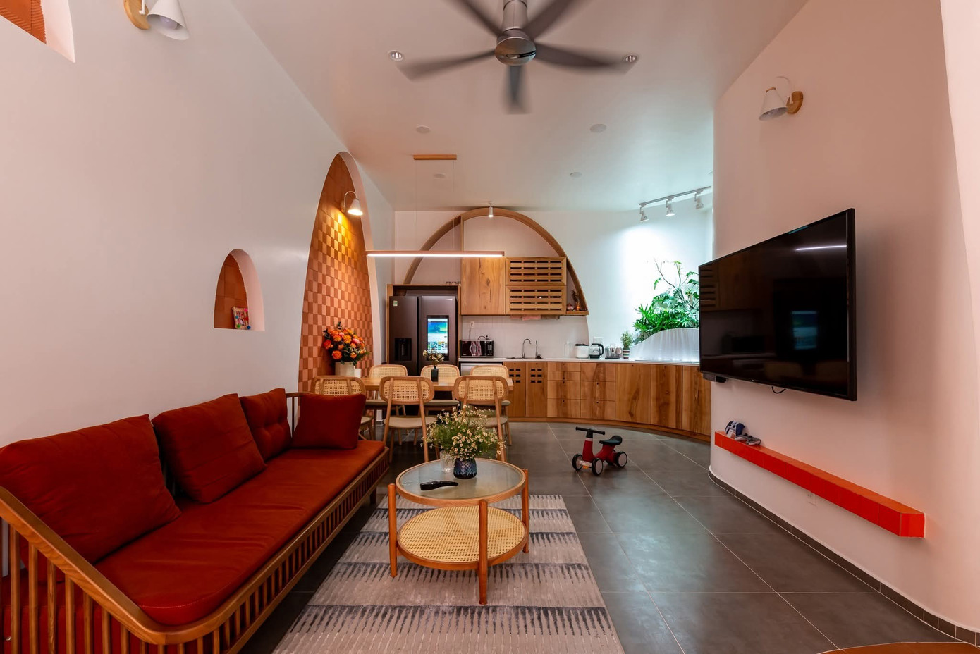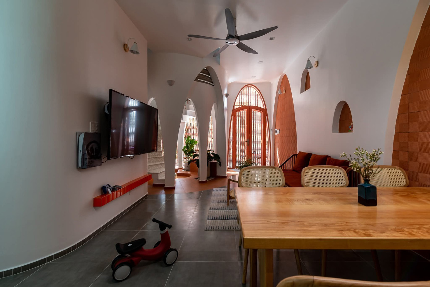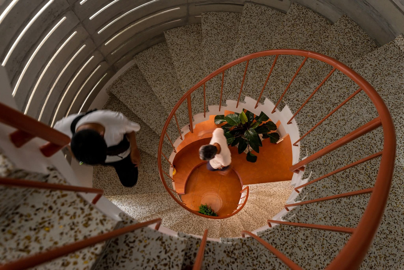 Các phòng sử dụng được bố trí vệ tinh quanh trục cầu thang, nhận đủ ánh sáng tự nhiên và không khí thông thoáng mát mẻ.