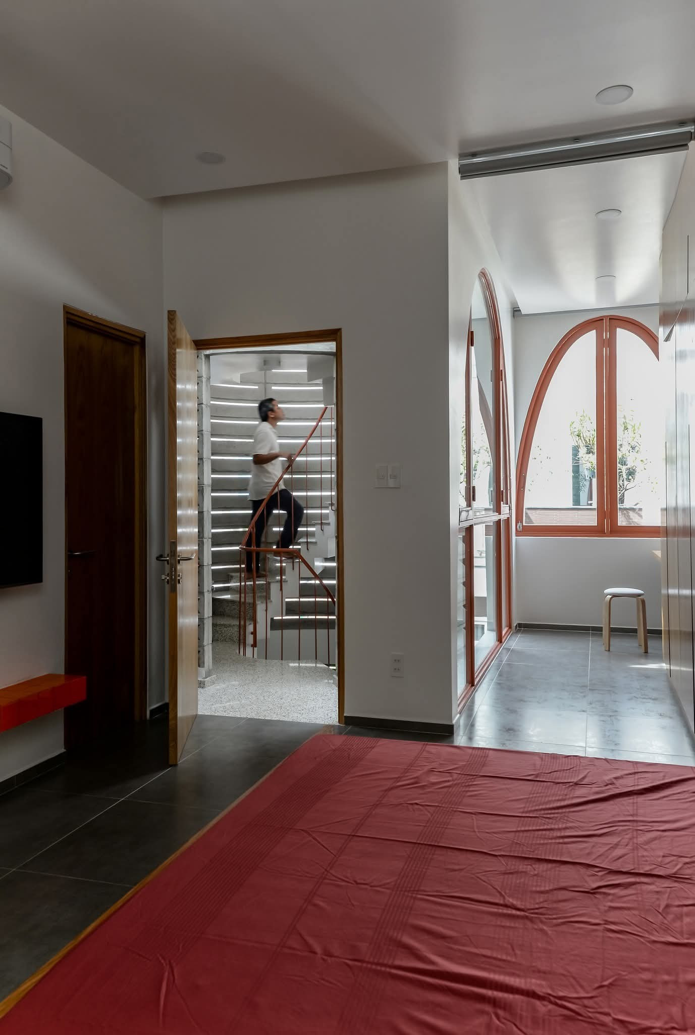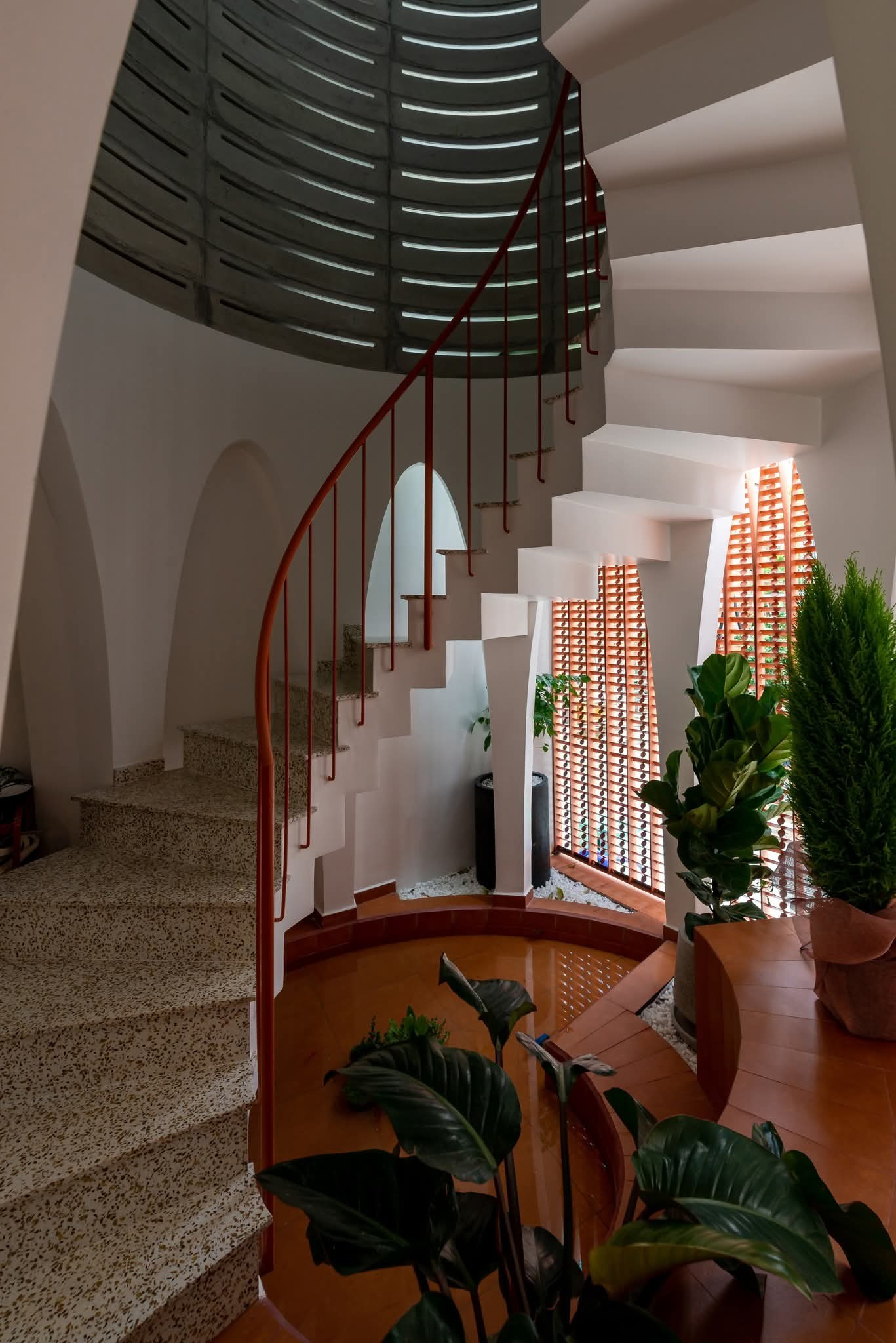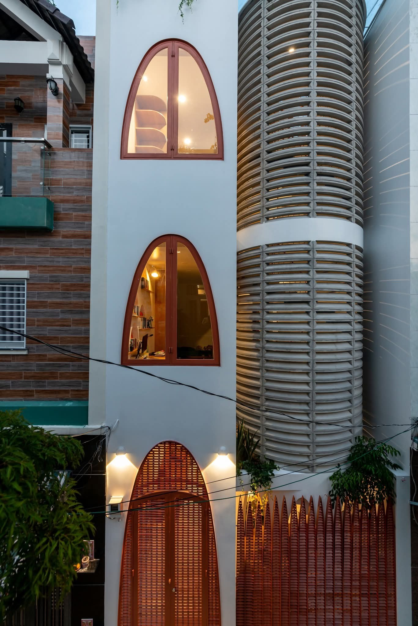 Trên khu đất có diện tích khu đất 5x9m, ngôi nhà được xây dựng với tổng diện tích 170 m2. Đây là dự án thiết kế nhà trong hẻm cụt với điểm nhấn đưa ra mặt tiền là một lõi thang xoắn, đồng thời cũng là một lõi gió thông thoáng cho toàn bộ căn nhà.