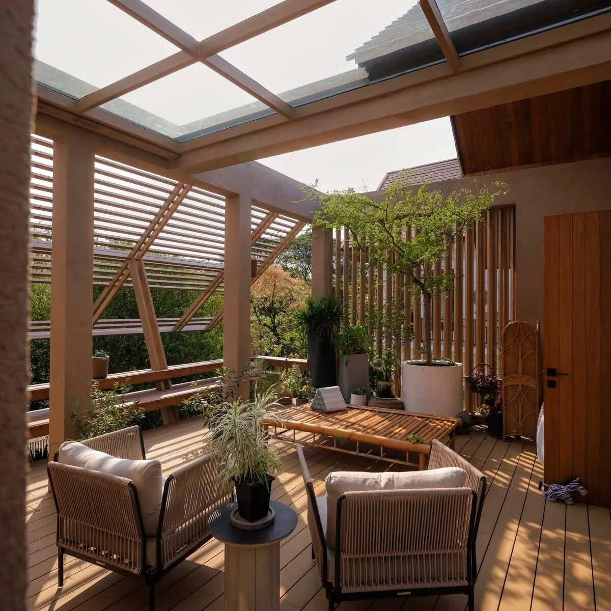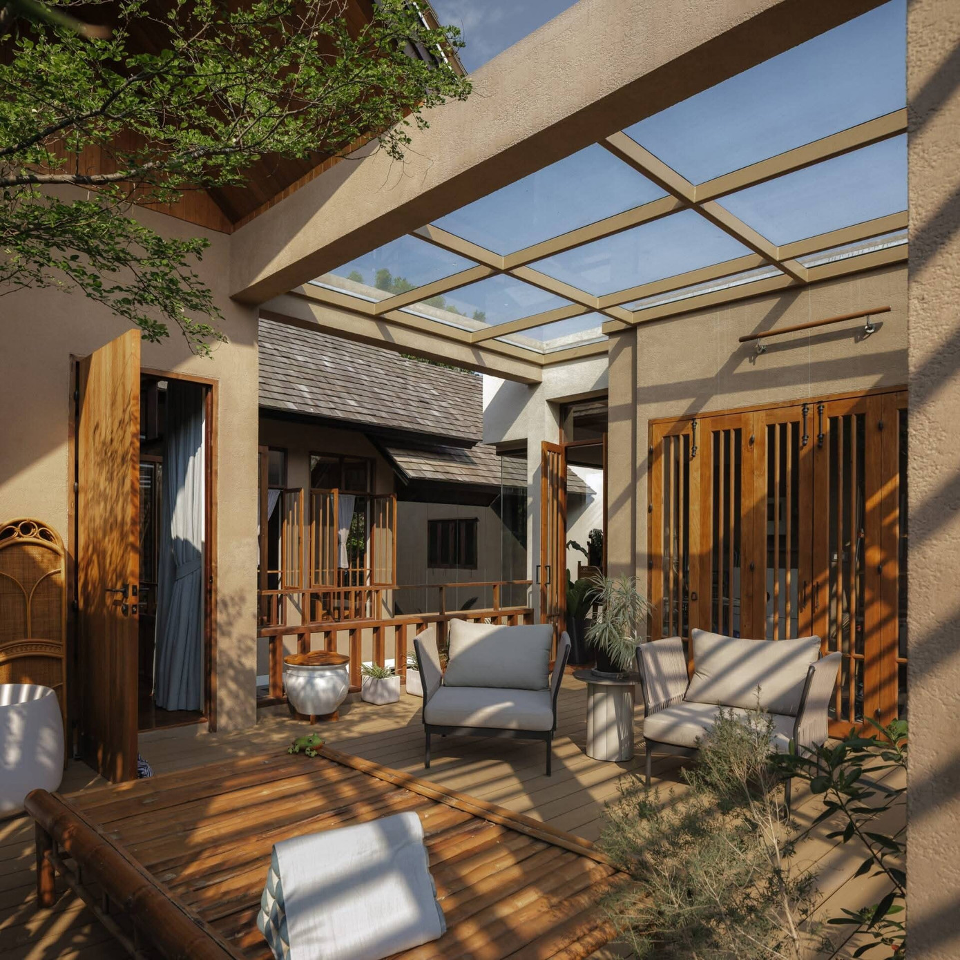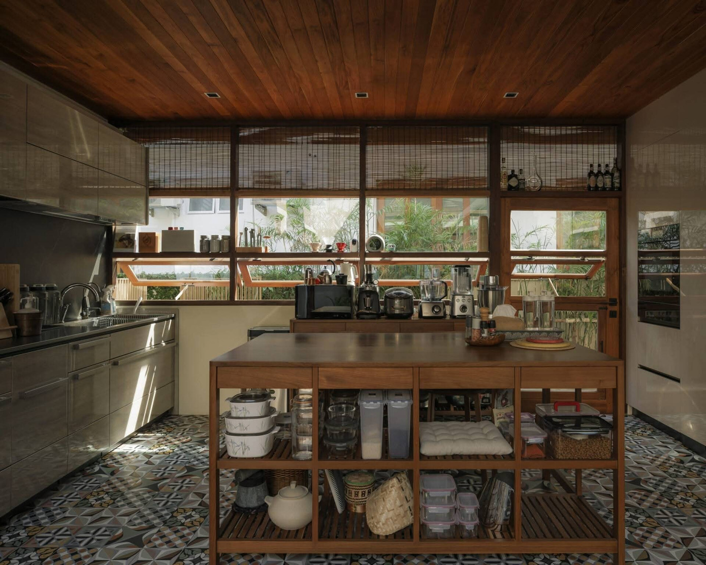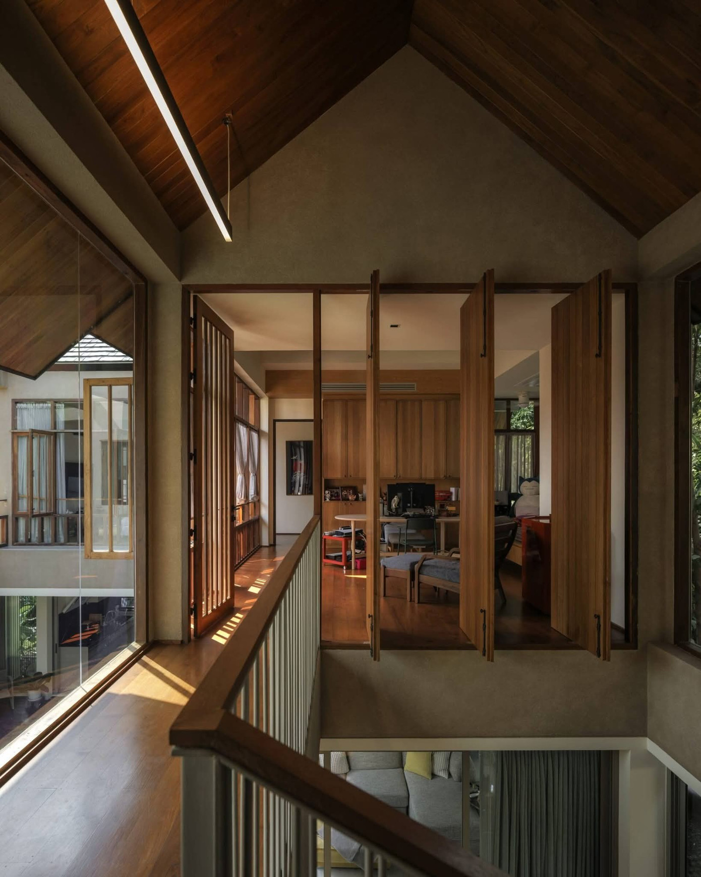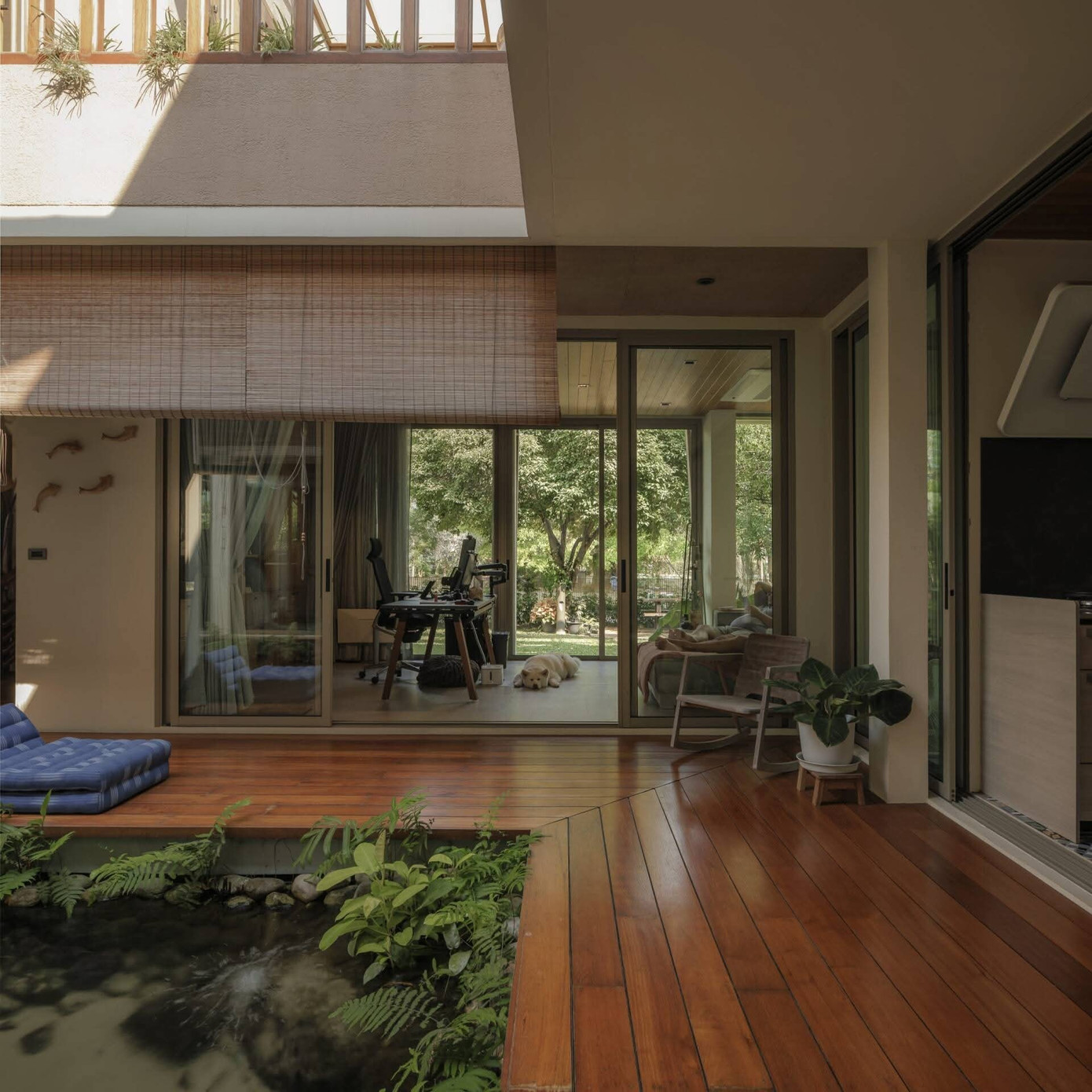 Tổ chức xung quanh một hồ nước ở giữa, ngôi nhà không chỉ trở nên thông thoáng, tiện nghi mà còn tạo nên những góc nhìn thư thái dễ chịu, phù hợp với nhu cầu sinh hoạt lâu dài của gia đình.