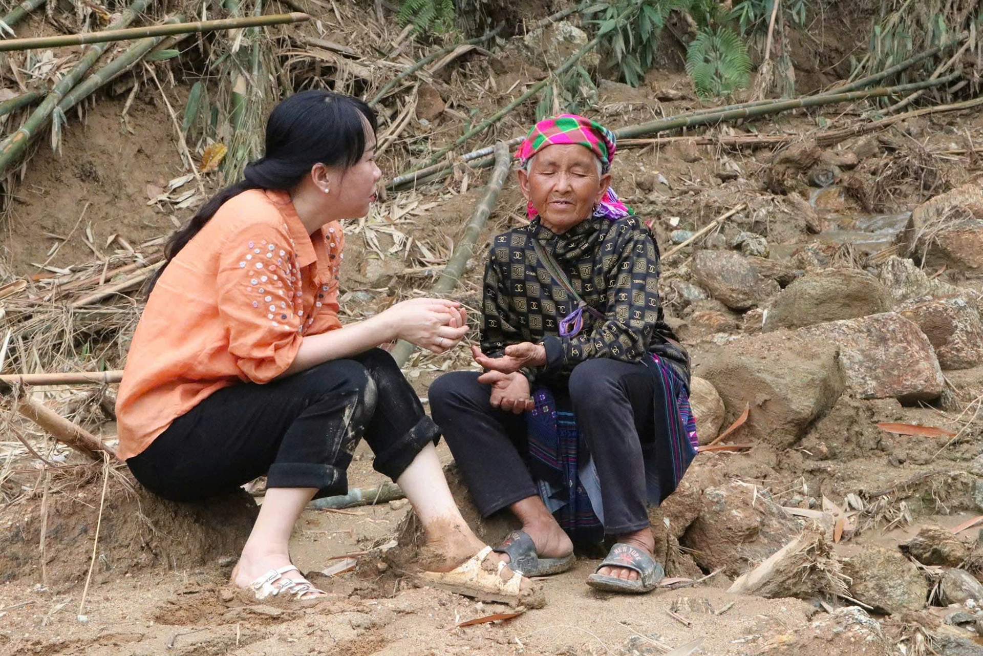 Nhà báo Hồng Thúy phỏng vấn người dân Nghệ An sau một trận bão đi qua.