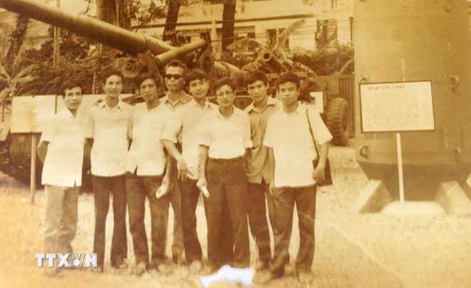 Nhà báo Trương Đức Anh (thứ ba bên phải) cùng các học viên Khóa K14 tại Thành phố Hồ Chí Minh, năm 1977. (Ảnh: TTXVN)