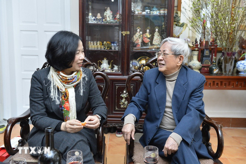 Tổng Giám đốc Thông tấn xã Việt Nam Vũ Việt Trang đến thăm và chúc Tết nguyên Phó Tổng Giám đốc Trương Đức Anh, ngày 31/1/2024. (Ảnh: TTXVN)
