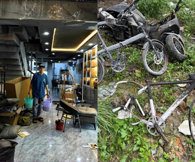 Theo chia sẻ của bà Lê Nga, vụ cháy đã gây ra những tổn thất vật chất đáng kể. Nhiều tài sản trong nhà đã bị hư hỏng, bao gồm xe điện, xe đạp, quần áo, hàng hóa kinh doanh và các đồ nội thất khác trên cả 4 tầng lầu.