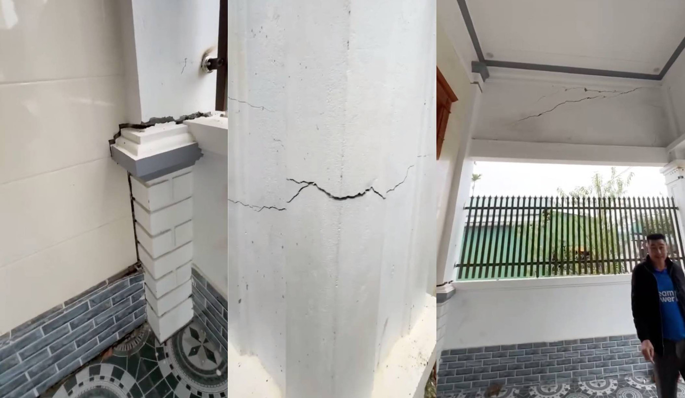 Ngôi nhà của 3 hộ dân ở thôn Thạch Sơn 5 (xã Anh Sơn) xuất hiện chằng chịt các vết nứt, sụt lún.