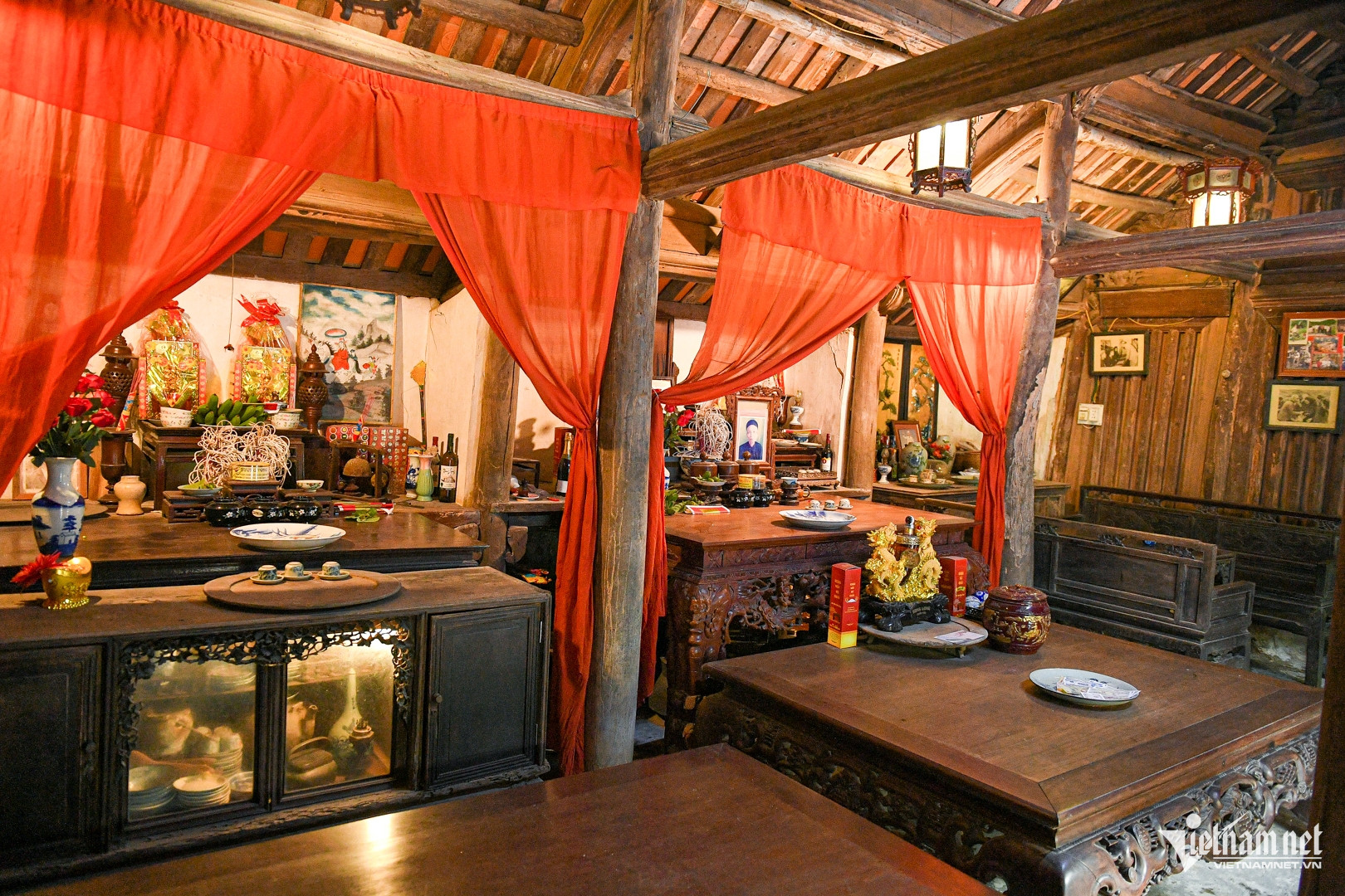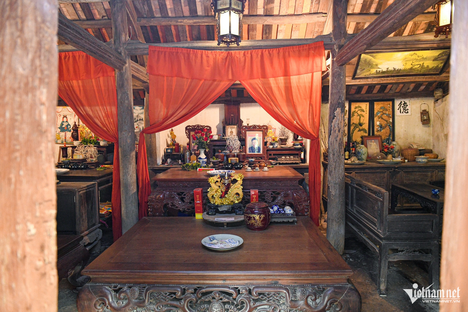 Ba gian nhà chính được gìn giữ trang nghiêm, sạch sẽ