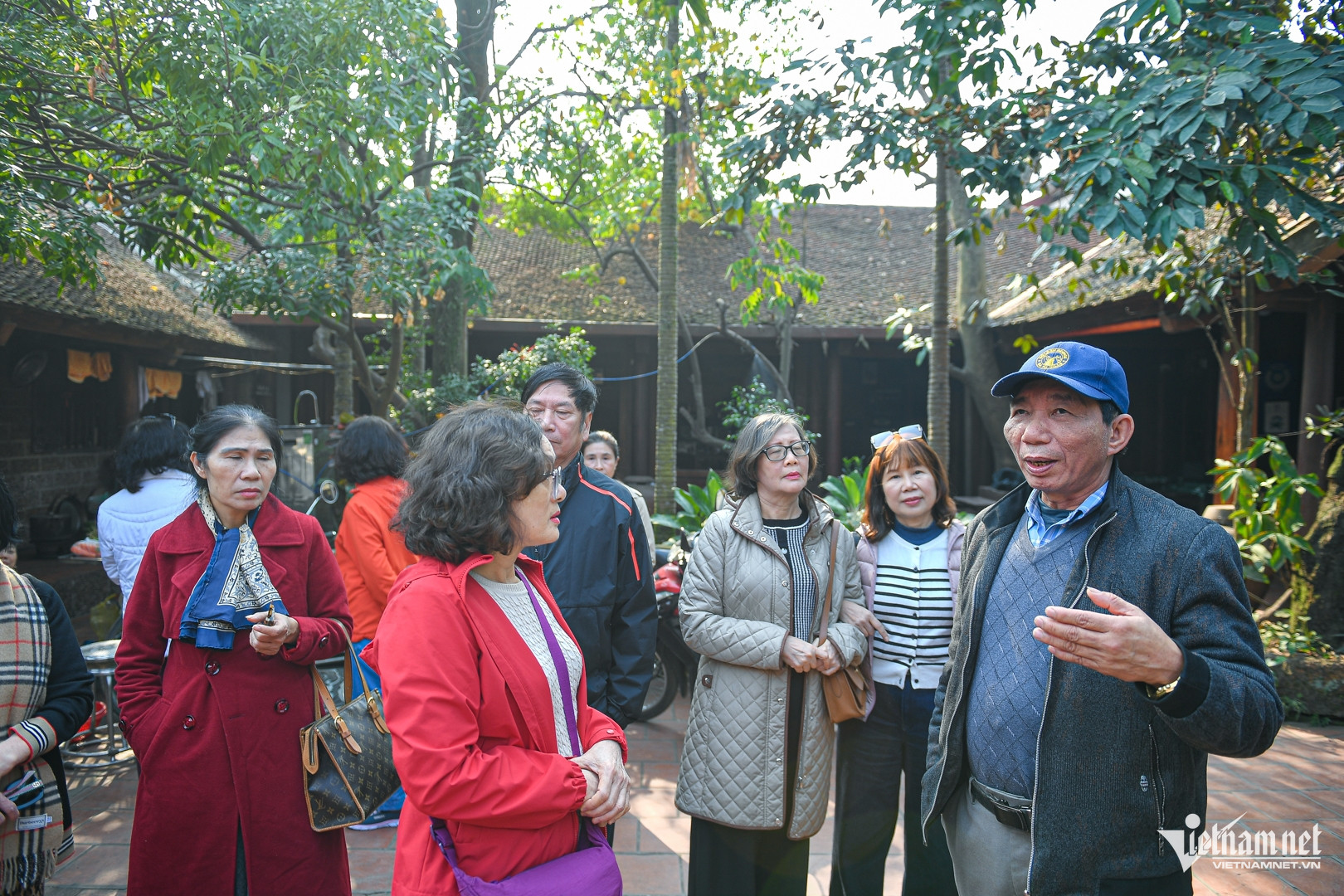 Du khách thích thú lắng nghe ông Hùng giới thiệu về ngôi nhà