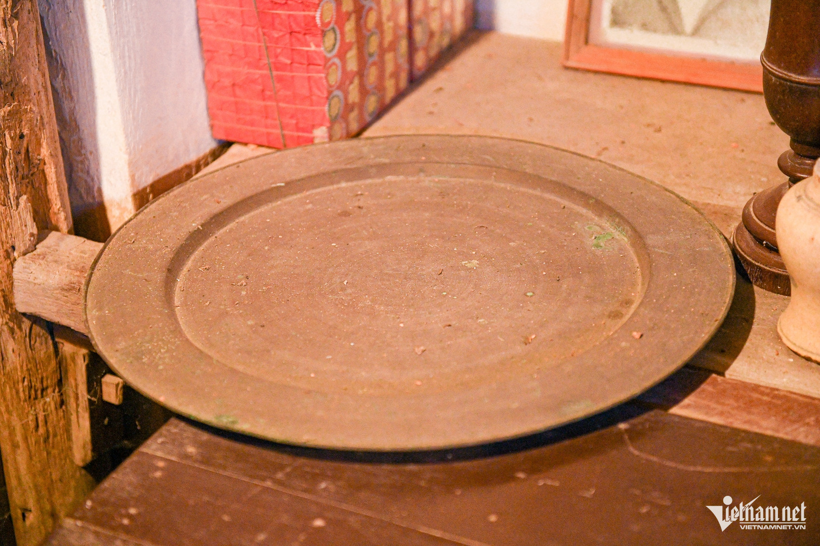 Chiếc mâm đồng 3 chân, có niên đại hơn 3 thế kỷ. Thời xưa, chiếc mâm này chỉ nhà khá giả mới có điều kiện dùng