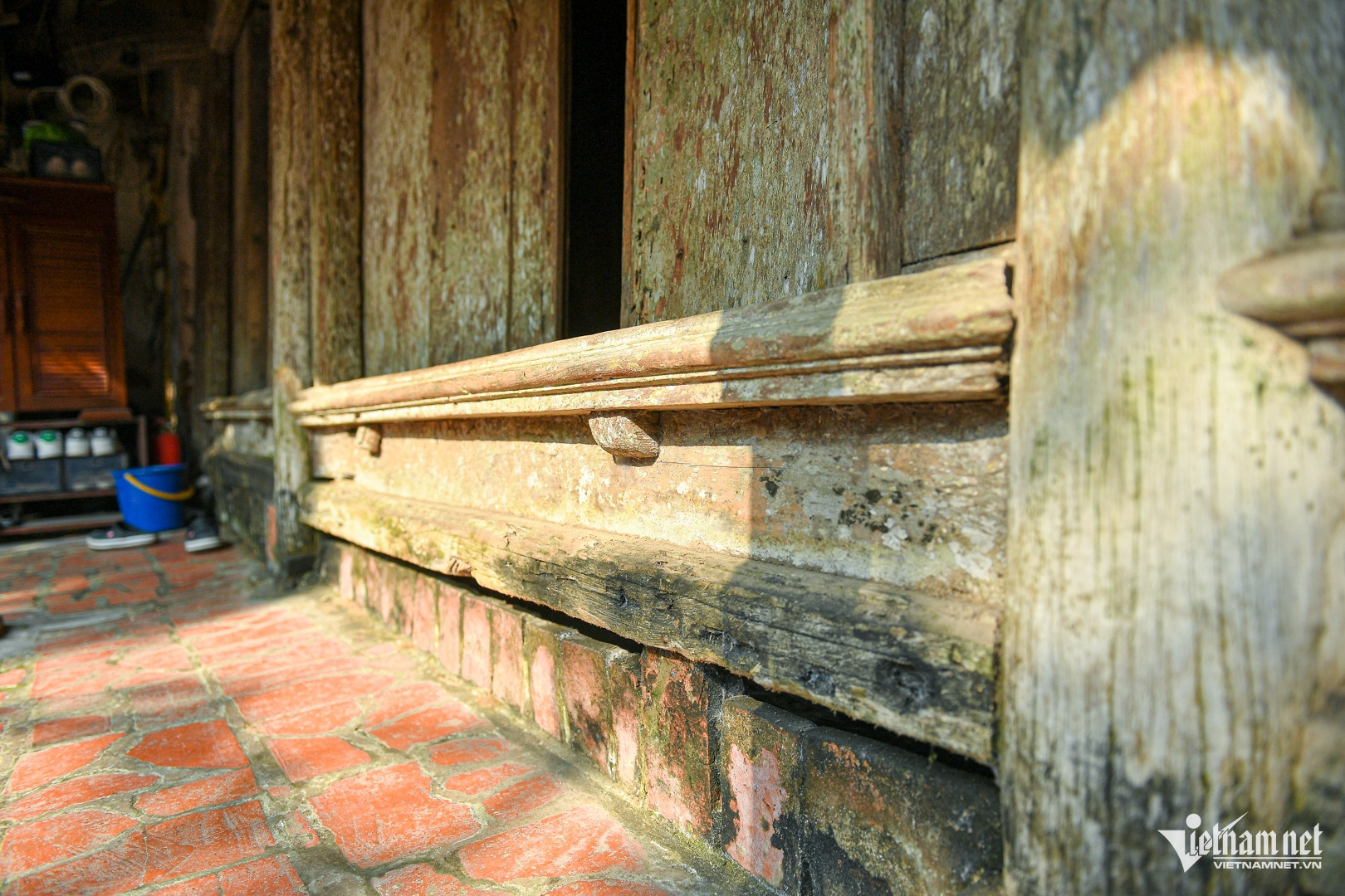 Cửa ra vào đã tồn tại qua hàng trăm năm, khóa cửa bằng cách cài then
