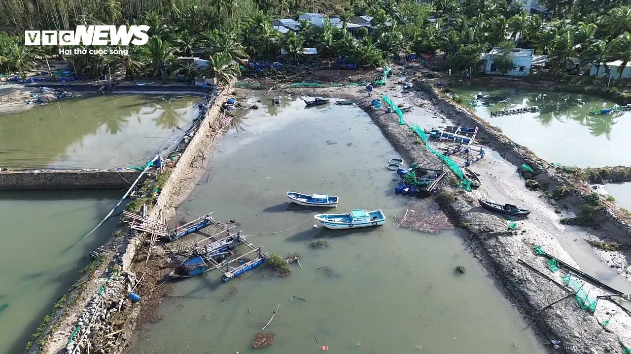 Sau 5 tiếng mưa to, gió lớn, sáng 7/11, tại tổ dân phố Phú Mỹ, phường Sông Cầu, tỉnh Đắk Lắk hàng trăm hộ bị thiệt hại do bão số 13 gây ra. Nhiều lồng bè bị sóng đánh sập, mất trắng.