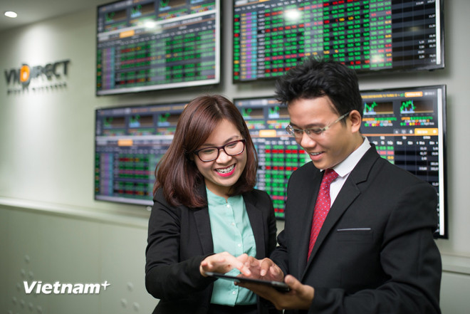 Nhiều nhóm nhà đầu tư đã túc trực theo dõi thông tin cả đêm hôm qua cho đến rạng sáng hôm nay với tâm lý “vỡ òa” sau đón nhận thông tin thị trường được nâng hạng. (Ảnh: Vietnam+)