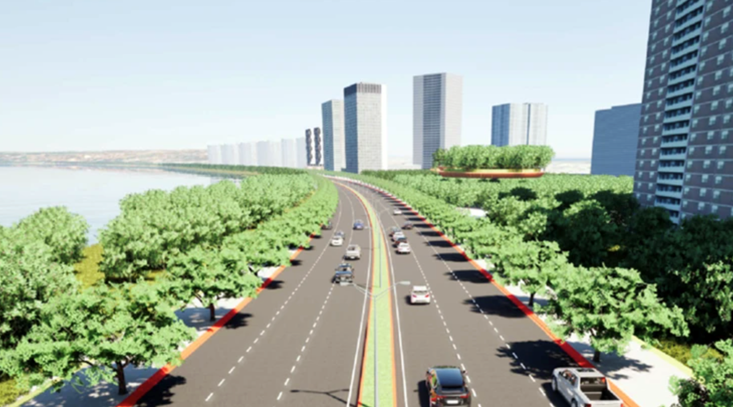 Phối cảnh tuyến đường ven biển có mặt cắt ngang 6 làn xe.