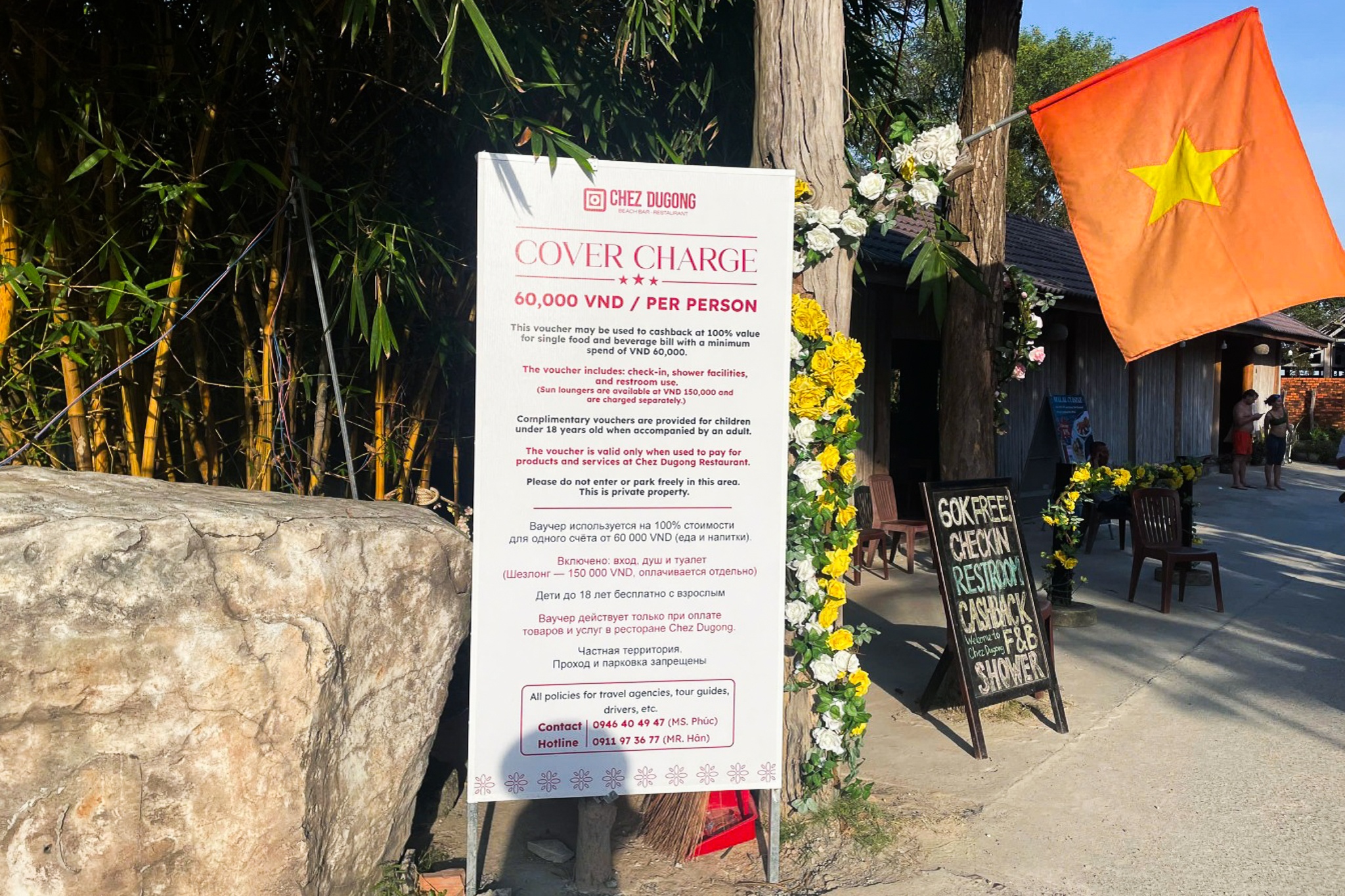 Nhà hàng cho biết đã bố trí nhân viên túc trực tại cổng để thu tiền, phát voucher và giải thích chính sách. Nhiều bảng thông báo bằng tiếng Việt, Anh và Nga được treo tại lối vào. Theo đơn vị, nếu không đồng ý với quy định, du khách có thể chọn các lối đi khác để xuống biển.