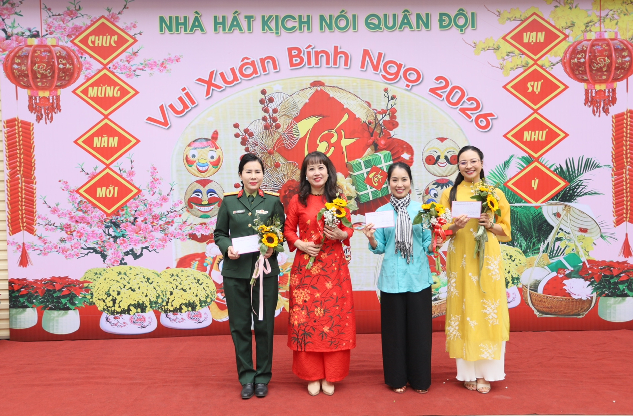 Đại tá Đỗ Toàn, Bí thư Đảng ủy, Chính trị viên Nhà hát Kịch nói Quân đội trao giải cho các đội thi trong phần thi bày mâm ngũ quả ngày Tết.