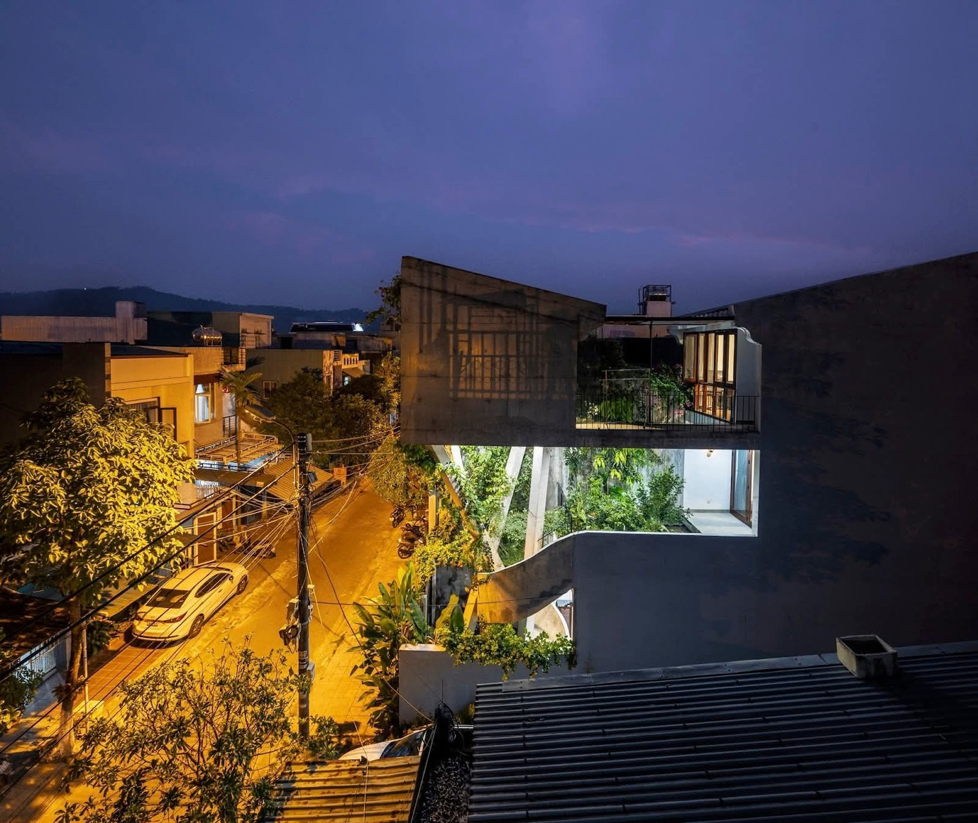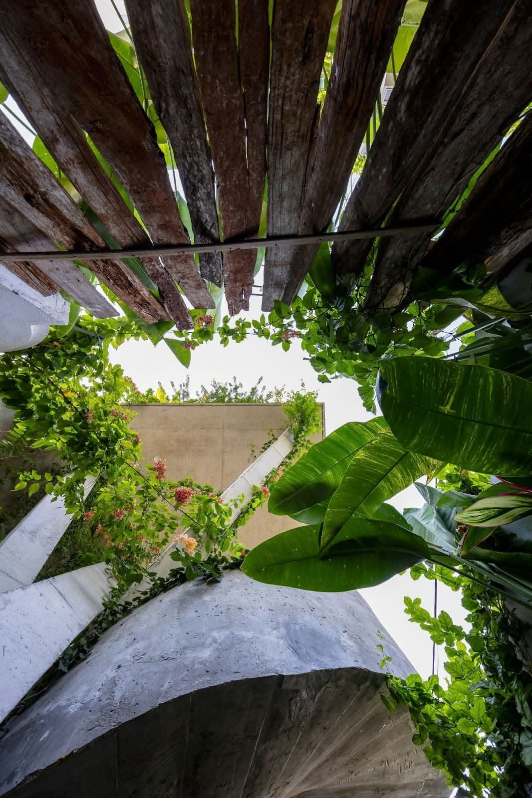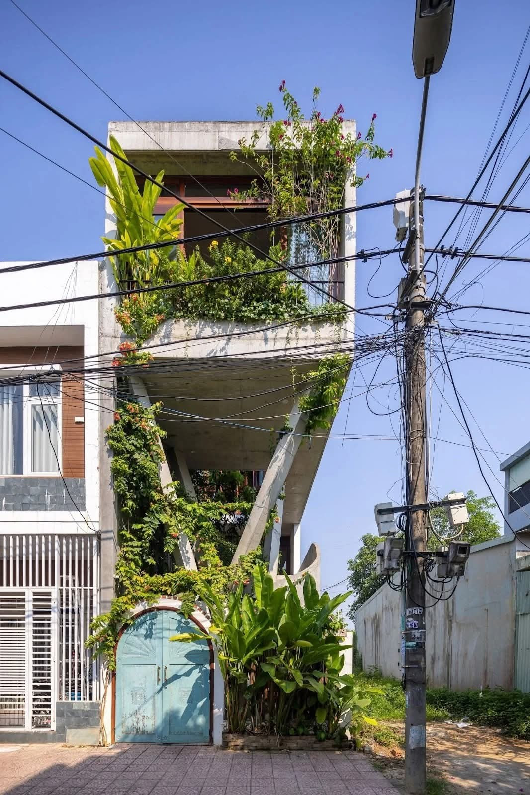 Công trình nhà 3 tầng được thiết kế khác biệt với lối thiết kế thông thường của nhà phố bằng việc bỏ đi các bức tường kín và lấp đầy bằng cây xanh.