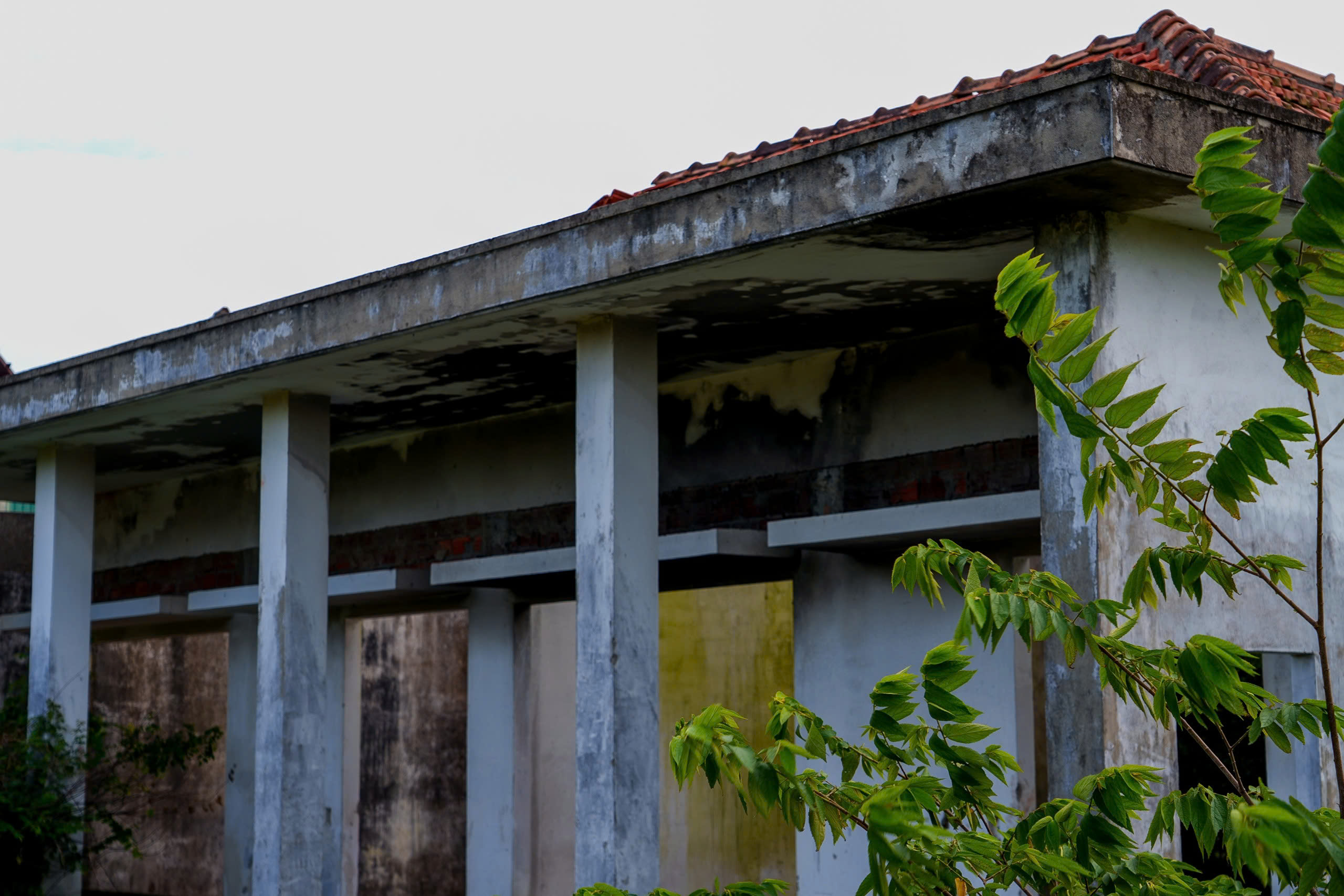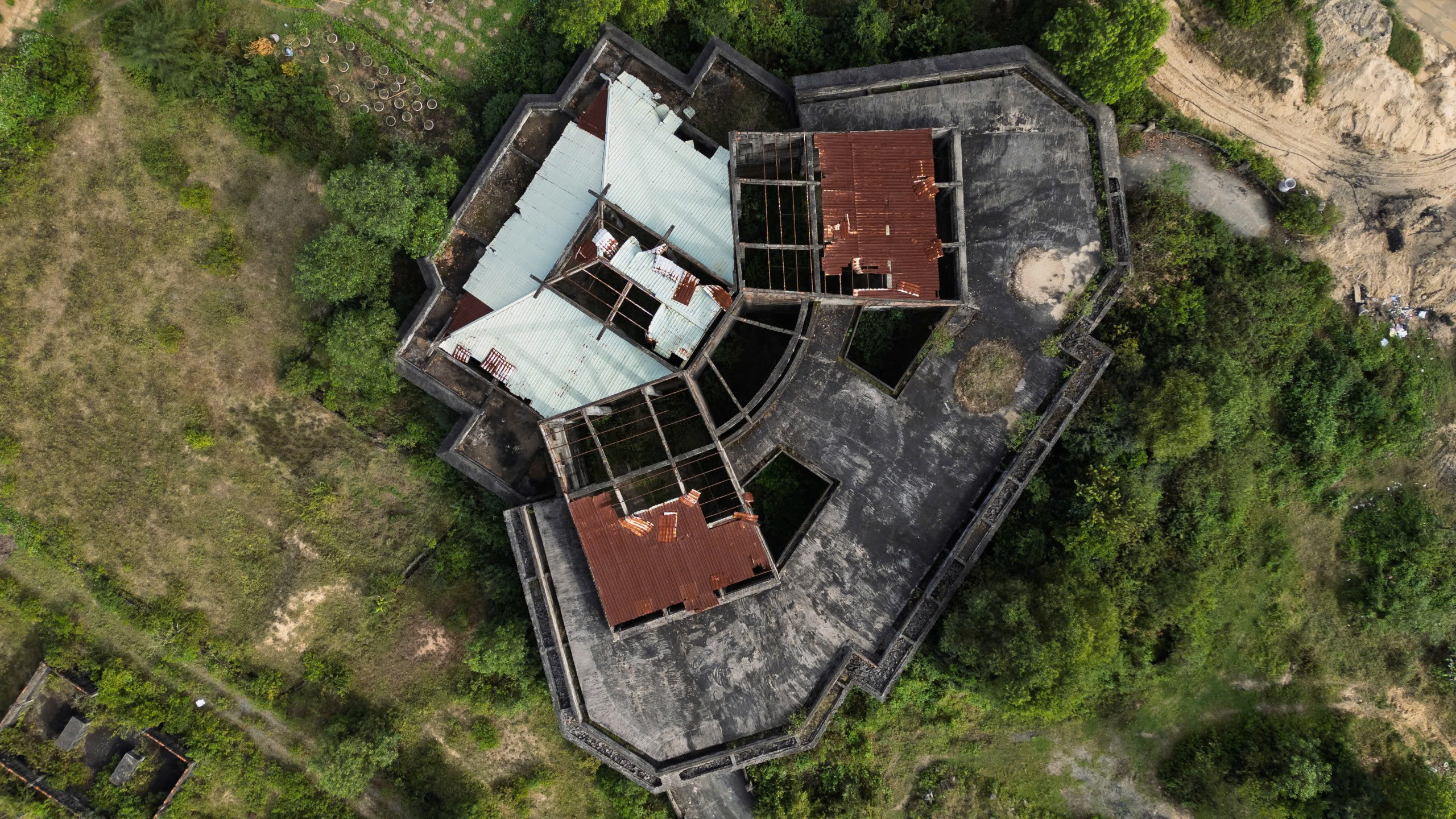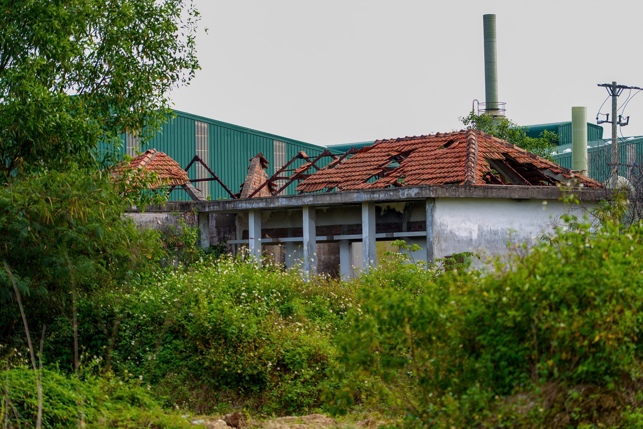 Khu nhà chính và khu hỏa táng hư hỏng nghiêm trọng. Phần mái bị gió thổi bay, tường bong tróc cùng nhiều phần đang xây dựng dang dở.