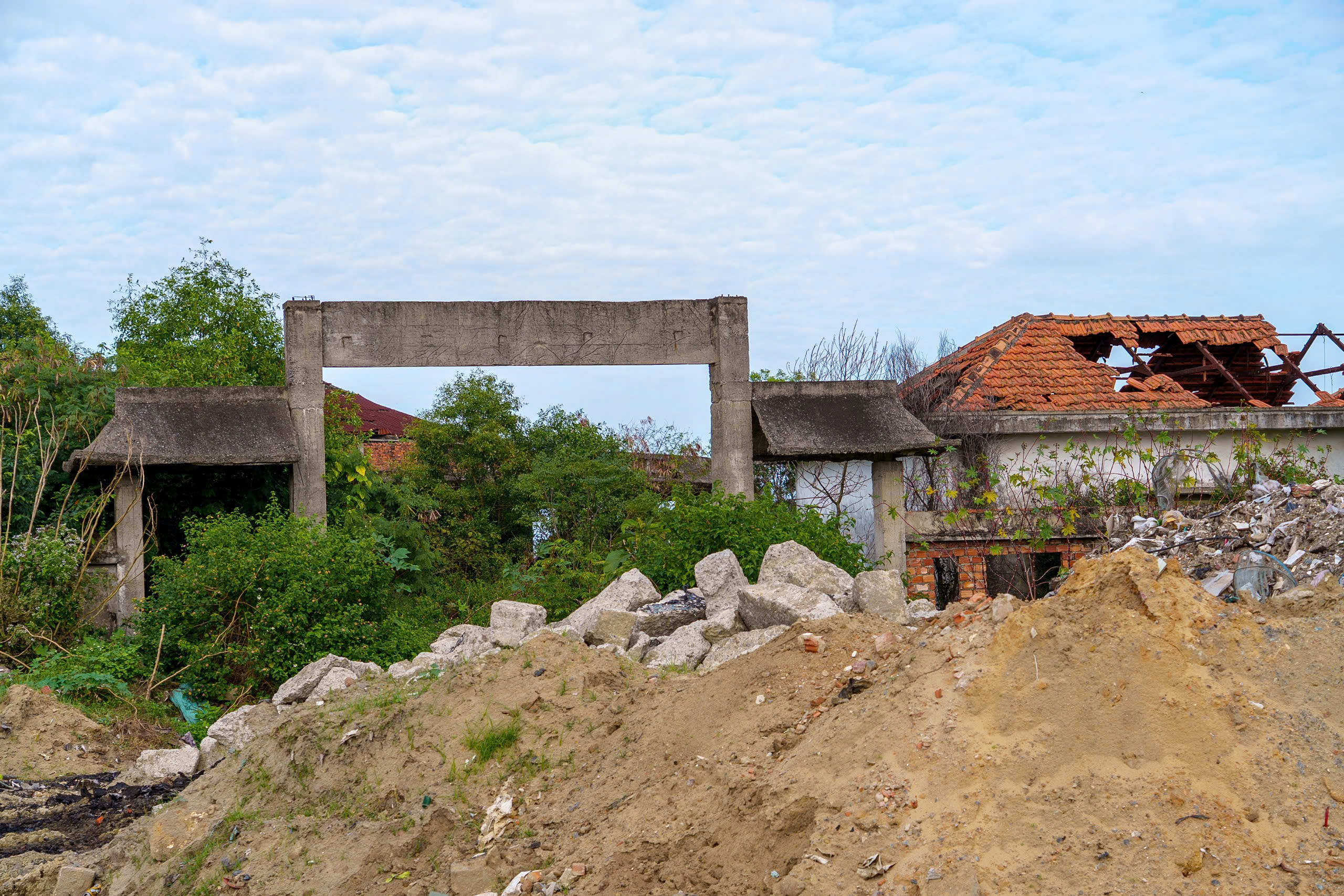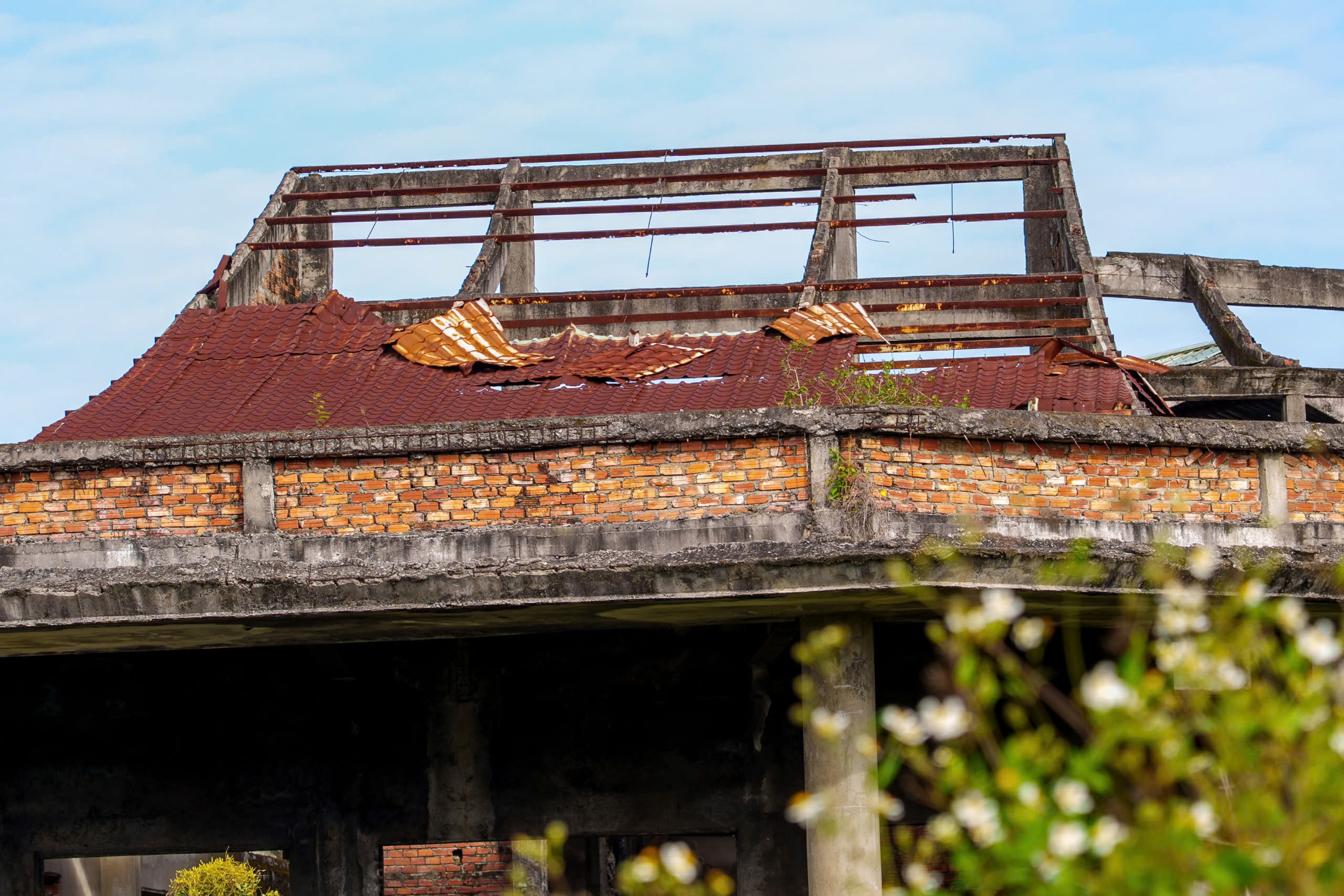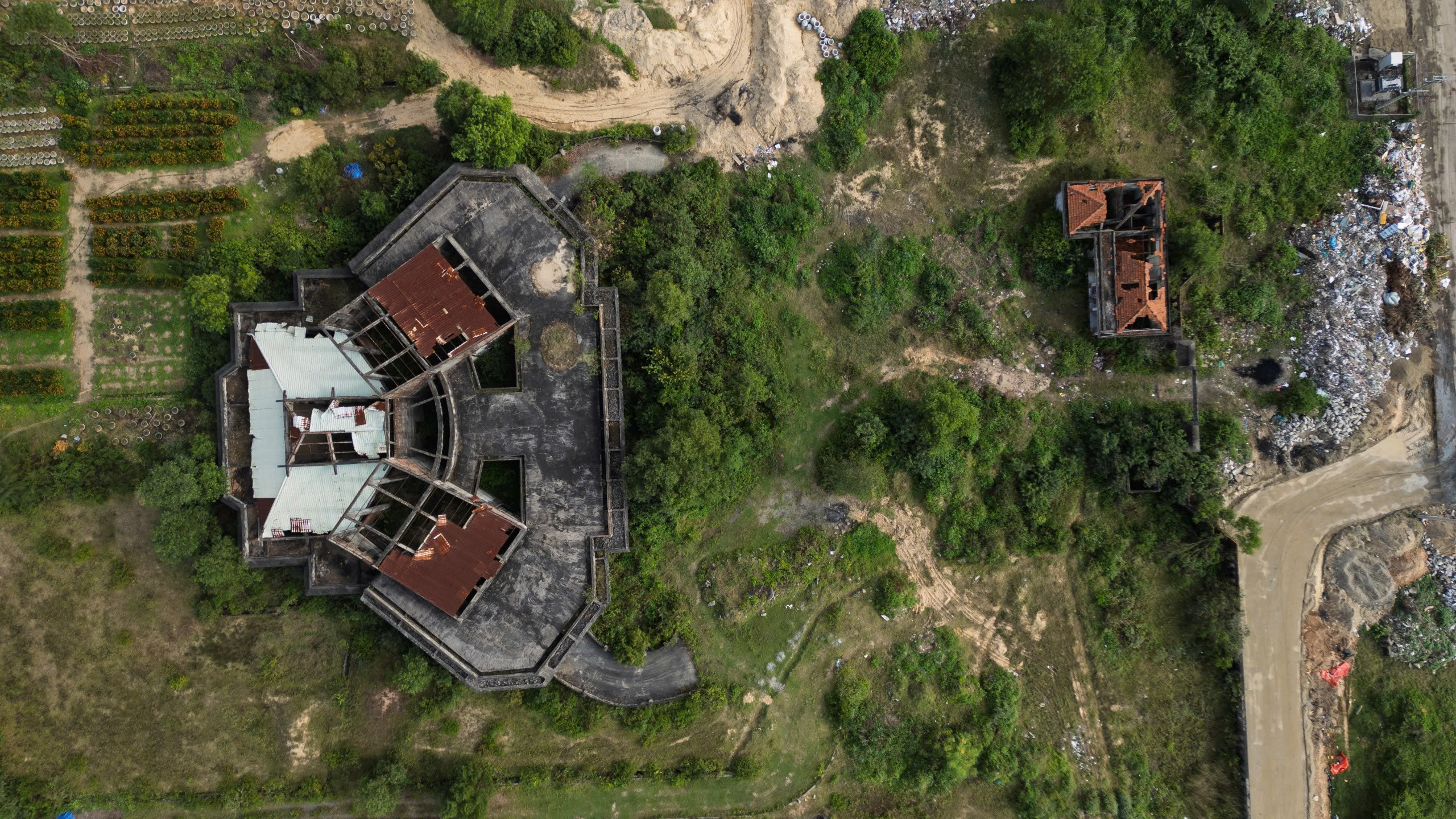 Khu nhà chính và khu hỏa táng hư hỏng nghiêm trọng. Phần mái bị gió thổi bay, tường bong tróc cùng nhiều phần đang xây dựng dang dở.