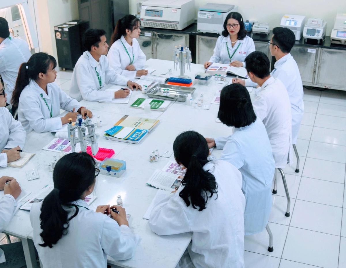 GS.TS Nguyễn Thị Lan hướng dẫn sinh viên làm nghiên cứu khoa học trong phòng thí nghiệm