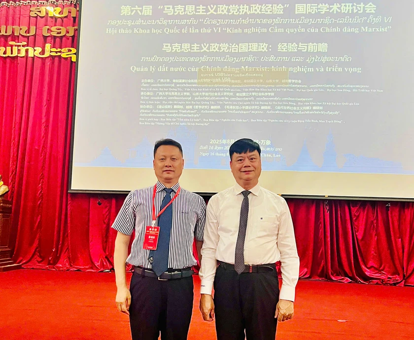 Giáo sư Từ Tần Pháp (bên trái) trong một buổi hội thảo tại Lào, năm 2025.