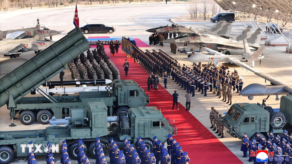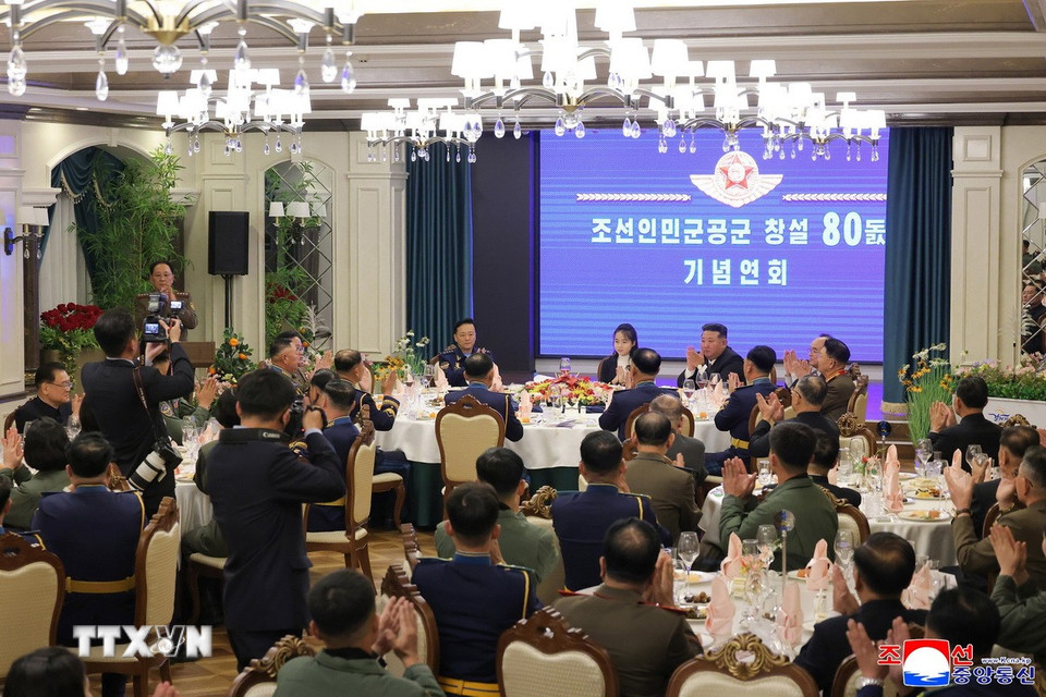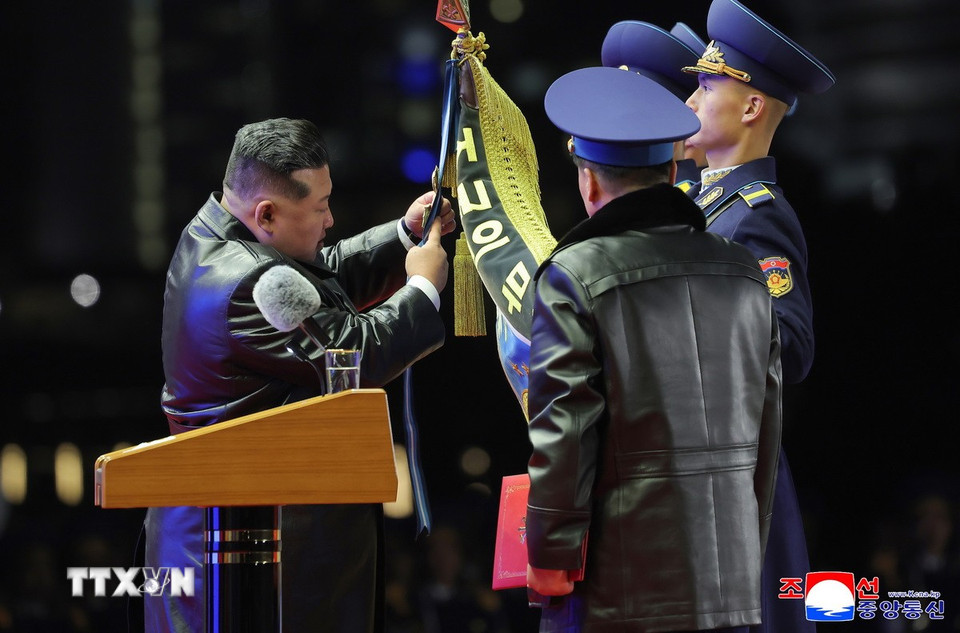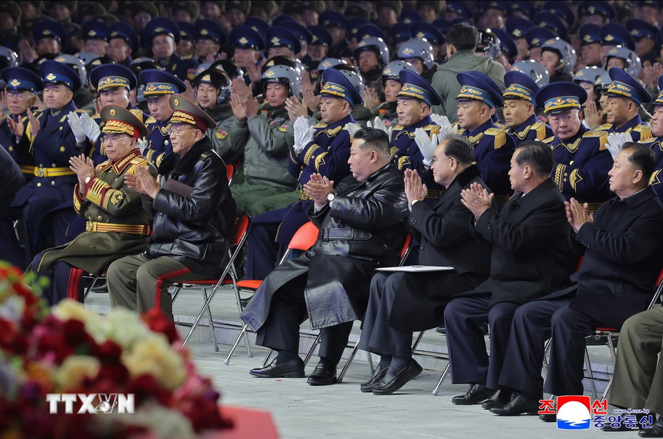 Truyền thông Triều Tiên ngày 30/11/2025 đưa tin Nhà lãnh đạo nước này Kim Jong-un đã tham dự Lễ kỷ niệm 80 năm thành lập Không quân, tại đó ông nhấn mạnh tầm quan trọng của lực lượng này đối với năng lực răn đe chiến tranh hạt nhân của Bình Nhưỡng. (Ảnh; KCNA/TTXVN)