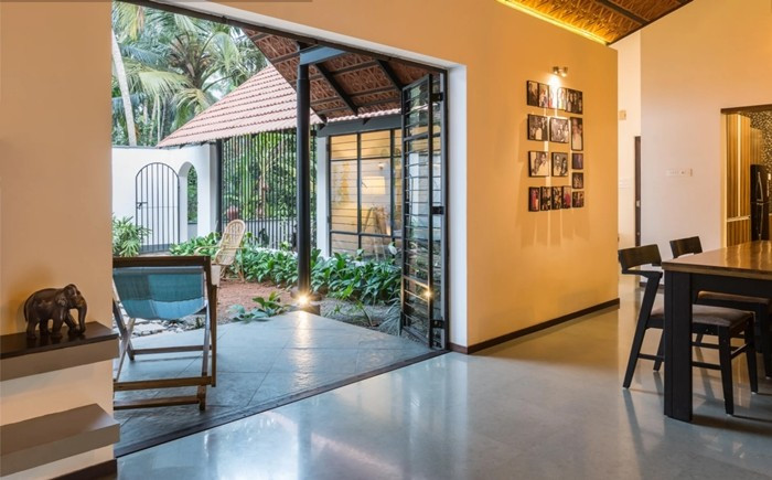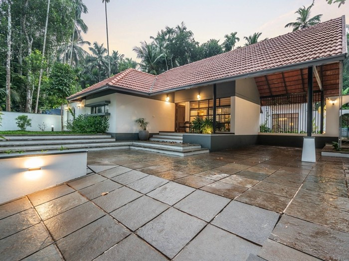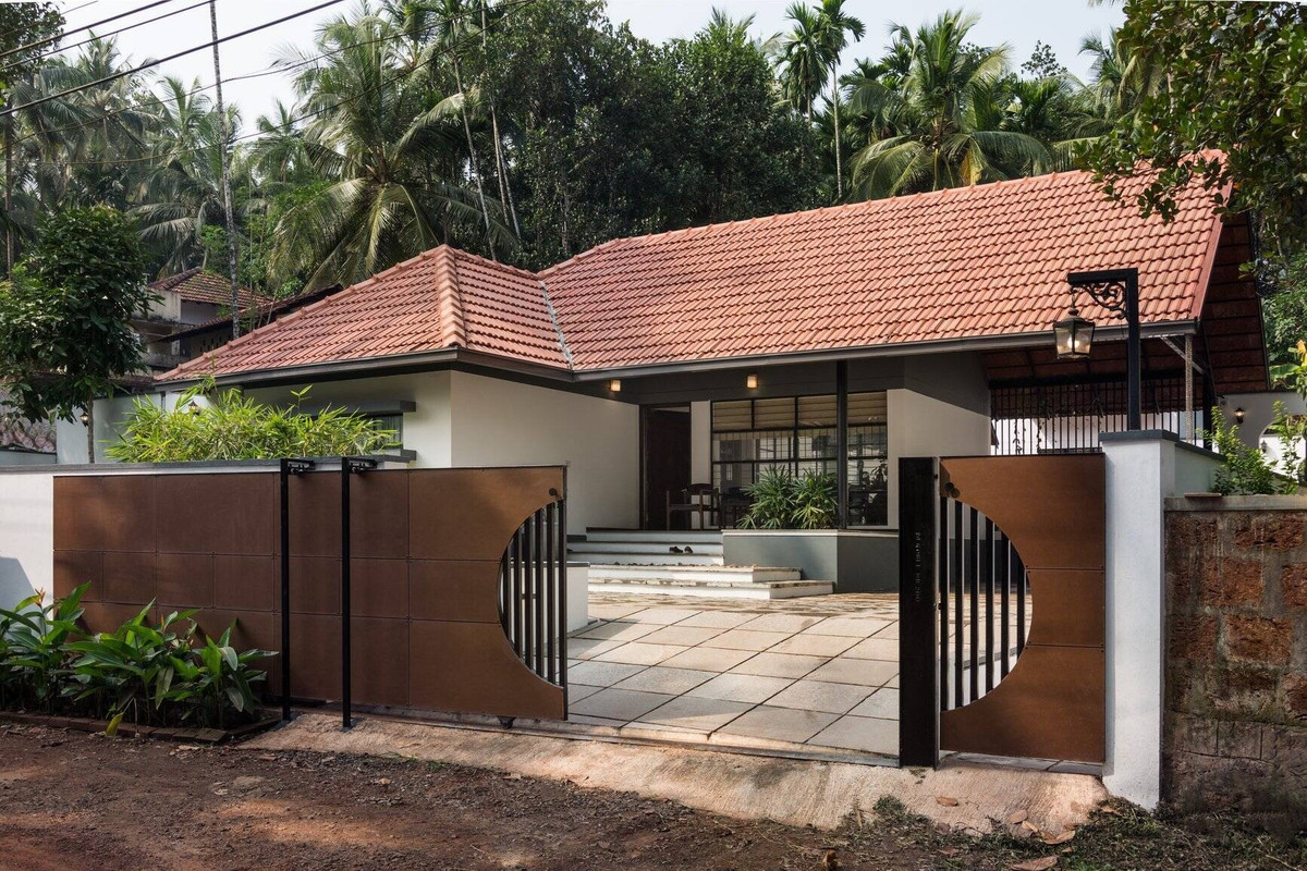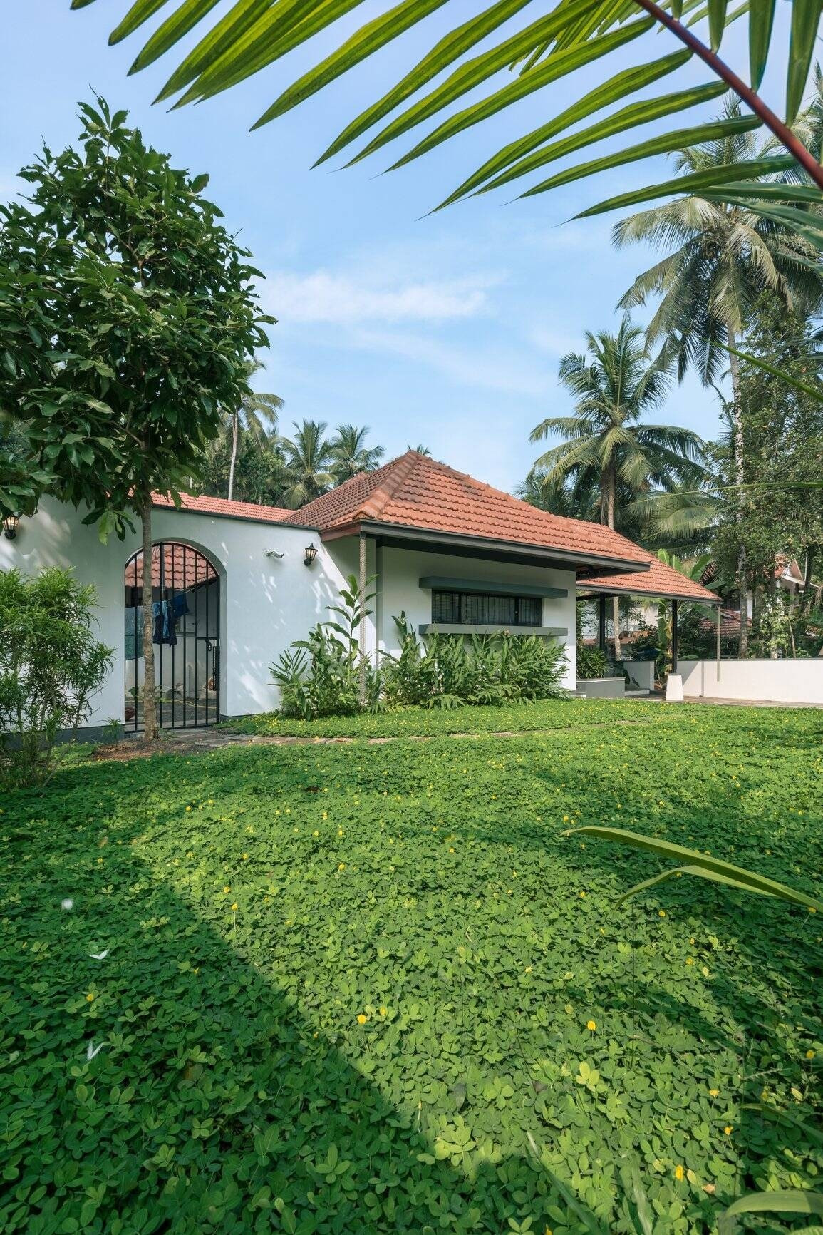 Nằm tại Kerala (Ấn Độ), ngôi nhà trông giống như một tầng từ bên ngoài, nhưng thực chất công trình bao gồm một nhóm các tòa nhà một và hai tầng được kết nối với nhau. Ảnh: Turtle Arts Photography