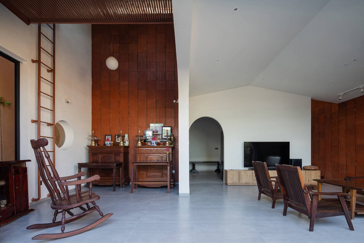 Bên trong, các mảng tường, cấu trúc mái và nội thất đều như lời kể dịu dàng về ký ức truyền thống, thắm đượm sự mộc mạc, dân dã nhưng tinh tế.