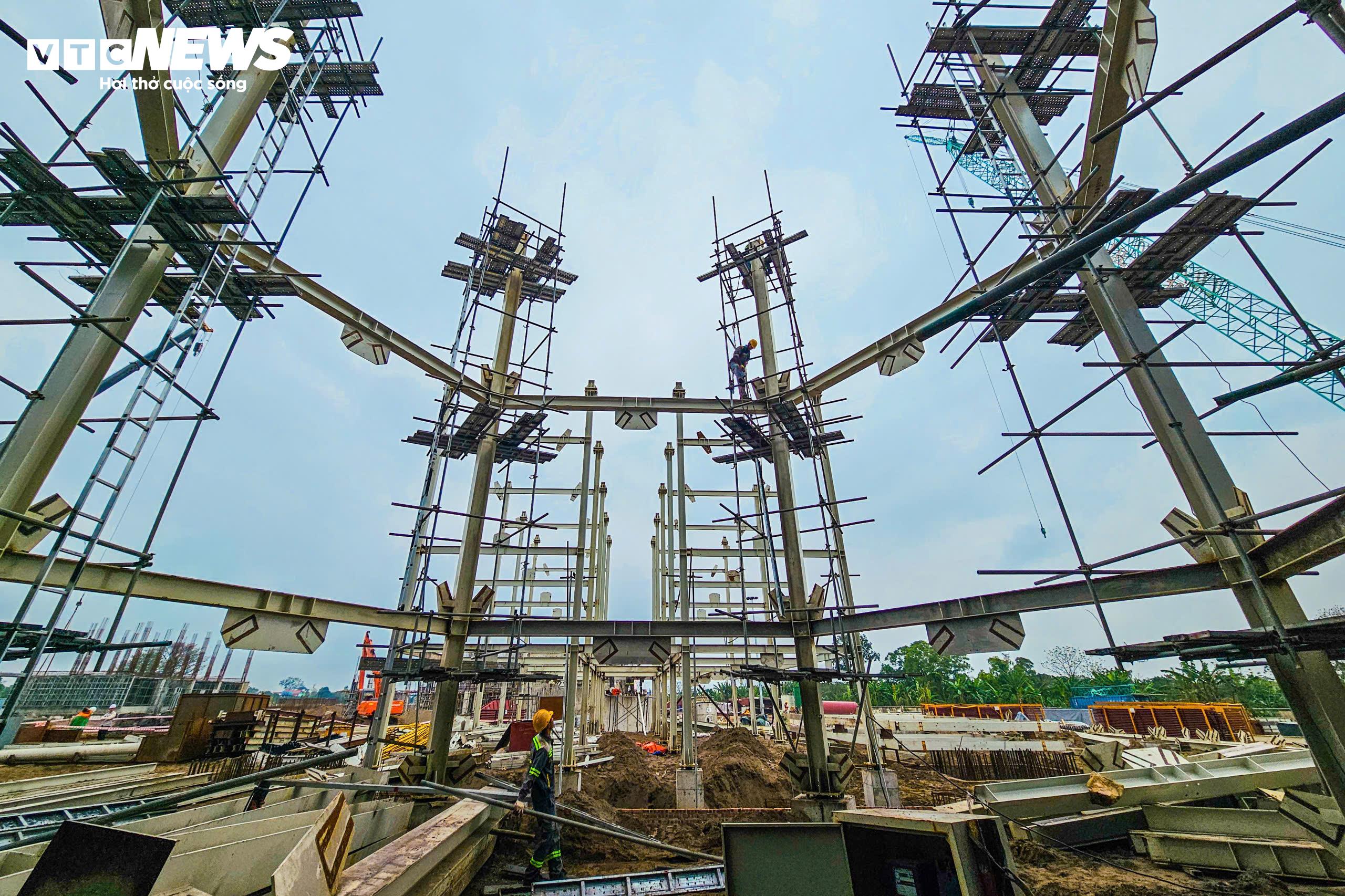 Khung lò đốt, khu nhà turbine và hệ thống xử lý khí thải lần lượt hoàn thiện, phác họa rõ nét diện mạo một tổ hợp xử lý rác - phát điện quy mô, hiện đại.