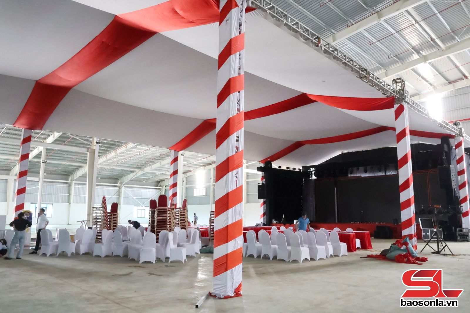 Khu vực tổ chức Lễ khánh thành được Công ty gấp rút hoàn thiện.