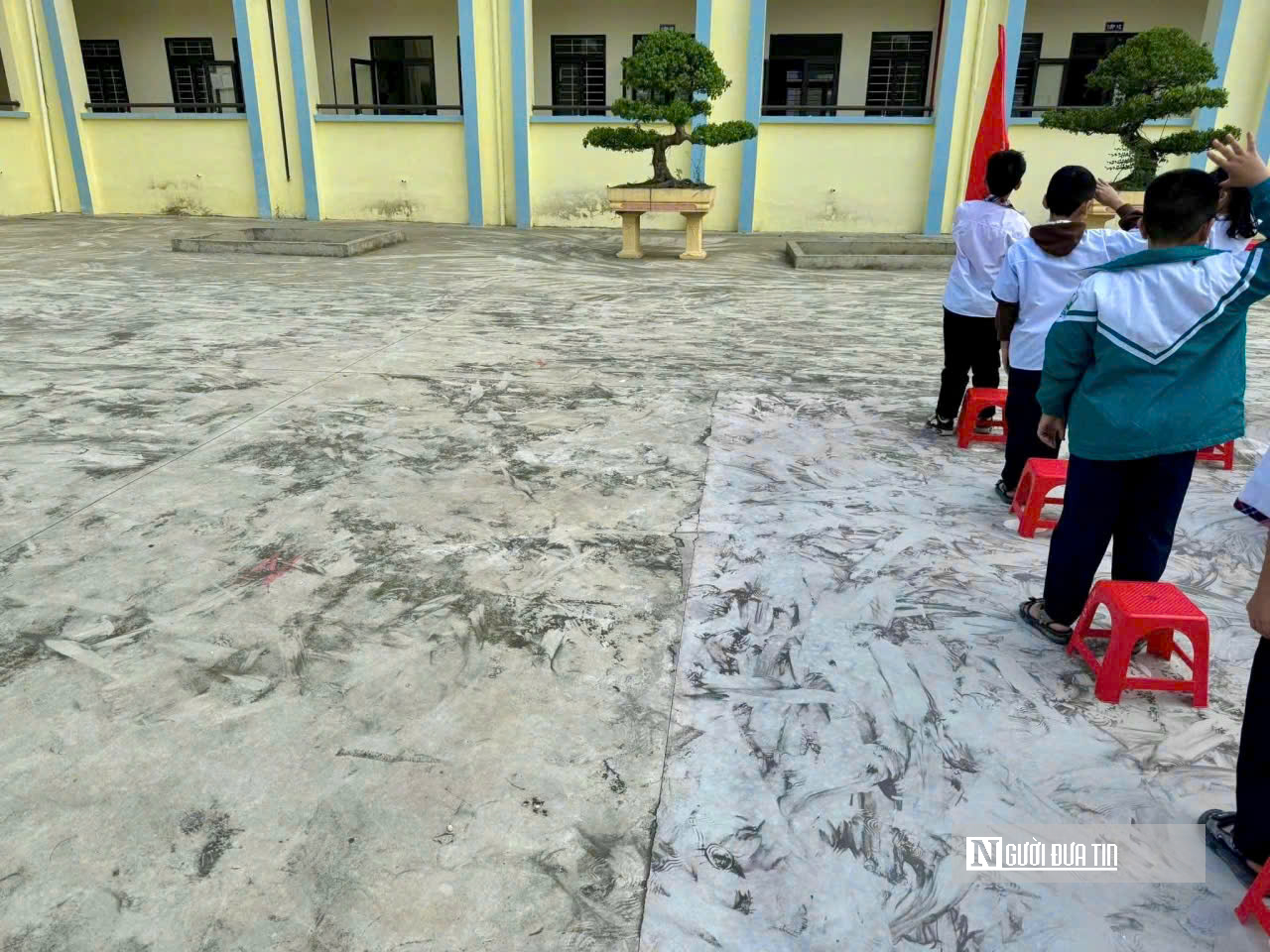 Trên sân Trường tiểu học Lam Sơn 3, bụi tạo thành từng mảng.