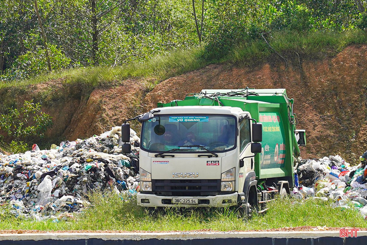 Nhà máy không vận hành từ nhiều ngày nay, song rác từ các địa phương vẫn đều đặn được HTX Môi trường Vũ Quang đưa về theo lịch trình, dẫn tới ùn ứ.