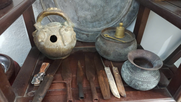 Trong nghệ thuật dân ca quan họ, trang phục là hình thức nhận diện rõ nét nhất, nhưng bộ đồ dùng trầu cau là thứ không thể thiếu trong các buổi gặp gỡ, buổi hát giao duyên, buổi lễ kết chạ... Tại căn phòng trưng bày của gia đình ông có bộ dụng cụ dùng cho trầu cau khá đầy đủ và là đồ cổ như: Bộ dao bổ cau, cắt lá trầu, cơi đựng trầu, tráp đựng trầu cau... Bên cạnh đó còn có các bình, lọ từ niên đại cổ mà ngày xưa các cụ quan họ dùng đựng rượu, đựng gạo... được bày đặt tự nhiên tạo nên âm hưởng sang trọng, đẹp đẽ biết chừng nào về đời sống văn hóa của dân ca quan họ.