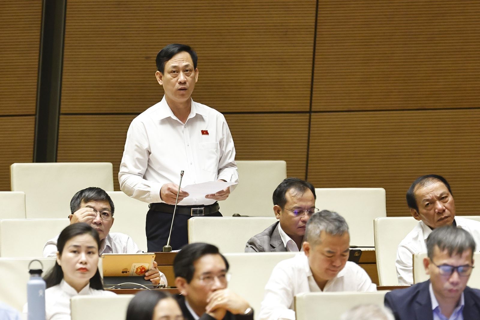 Đại biểu Quốc hội tỉnh Vĩnh Long Trần Quốc Tuấn phát biểu. Ảnh: Doãn Tấn/TTXVN