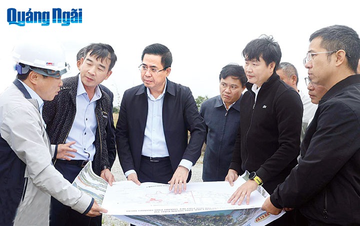 Phó Bí thư Tỉnh ủy, Chủ tịch UBND tỉnh Nguyễn Hoàng Giang kiểm tra thực tế vị trí dự kiến xây dựng khu nhà ở xã hội thuộc Khu đô thị mới Phú Mỹ, do Tổng Công ty Đầu tư phát triển nhà và đô thị làm chủ đầu tư. Ảnh: NG.ĐỨC