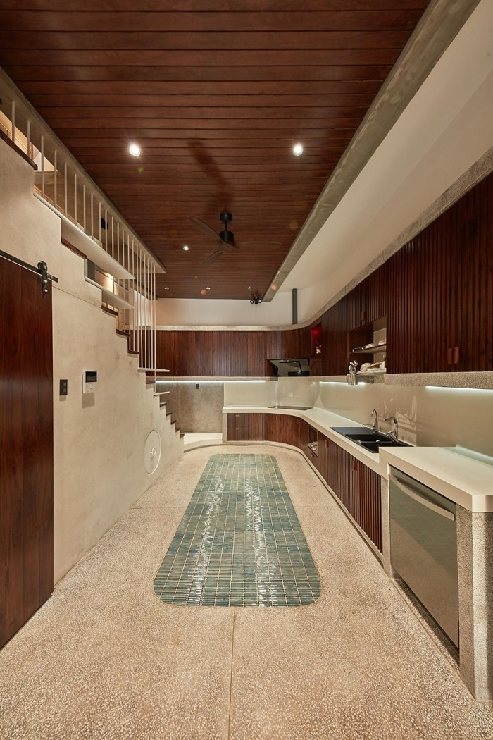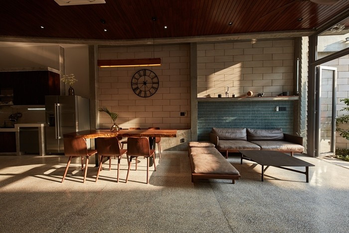 Ý tưởng chủ đạo của công trình là tạo nên một khe thoáng kéo dài từ trước ra sau, kết hợp giếng trời để dẫn sáng và thông gió tự nhiên cho toàn bộ không gian. Ảnh: Thiết Vũ