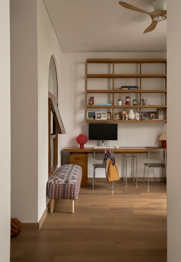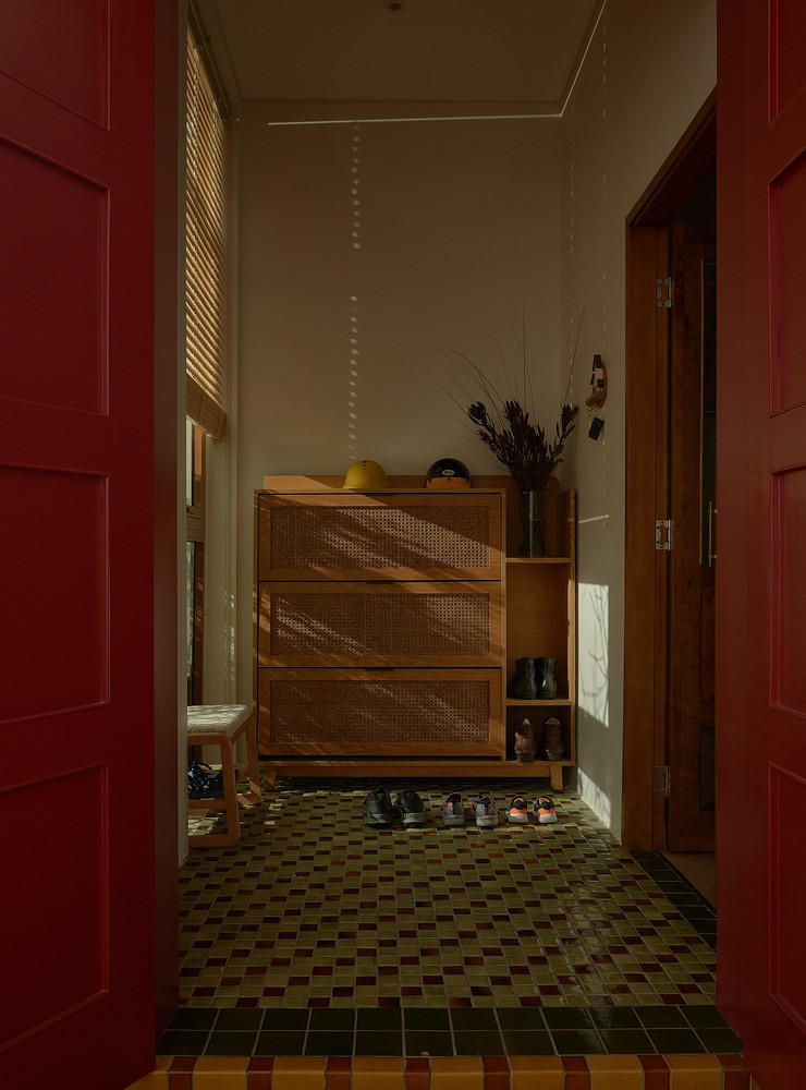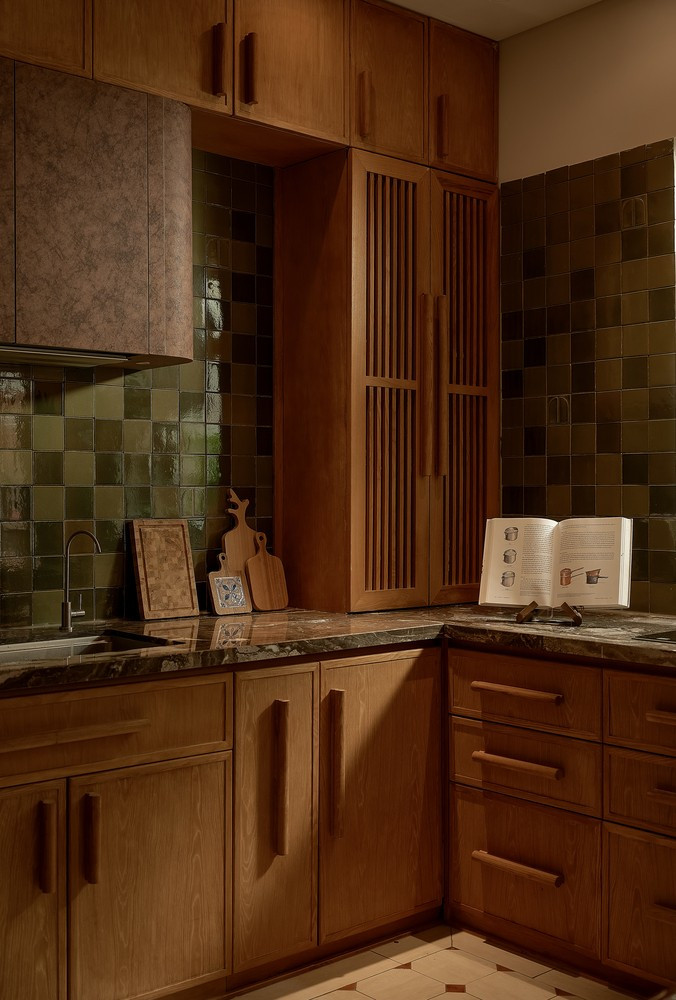 Trong công trình, vật liệu được sử dụng không nhằm mục đích phô diễn sự sang trọng tức thời, mà mang lại vẻ đẹp của sự trầm tích: Gạch gốm, đá mosaic, gỗ tự nhiên và các chi tiết kim loại thủ công. Chúng có độ nhám, có chiều sâu và quan trọng hơn cả là khả năng “lão hóa” duyên dáng cùng ngôi nhà. Mỗi bề mặt vật liệu là một điểm chạm, kết nối con người với không gian sống một cách gần gũi và mộc mạc nhất.